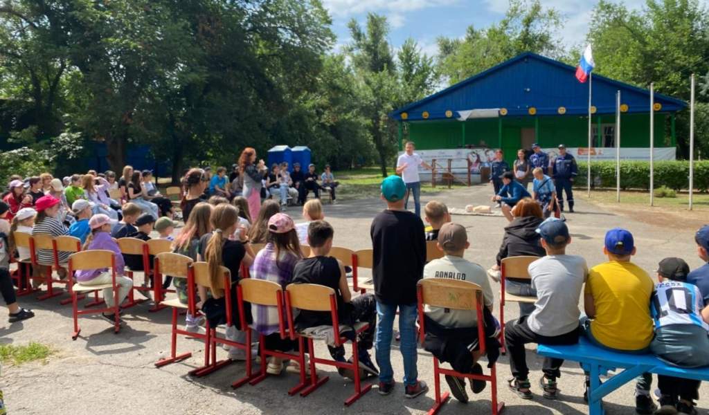 В муниципальном лагере «Ивушка» провели профилактические занятие для сотрудников и воспитанников оздоровительного центра. Сотрудники 9-го отряда ФПС МЧС, управления ГО ЧС Волгодонска, ВДПО и студенты-спасатели филиала ДГТУ рассказали ребятам о безопасном отдыхе у воды, о правилах пожарной безопасности.
