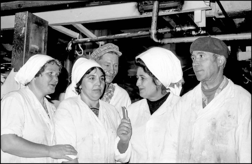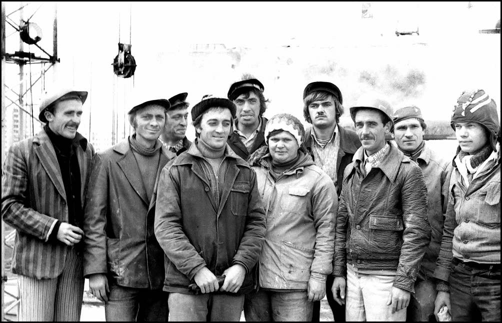 На снимке: передовые рабочие ригады: Н.Ткаченко- бригадир, А.Комиссар – сварщик, Л.Захарова, Н.Фейзуллаева, Н. Хализов.