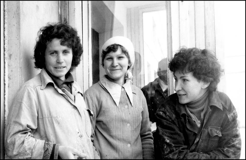На снимке: бригадир О. КОЛЧАНКИНА, плиточницы Т. БЕЛЯЕВА и Л. СЛУЦКАЯ