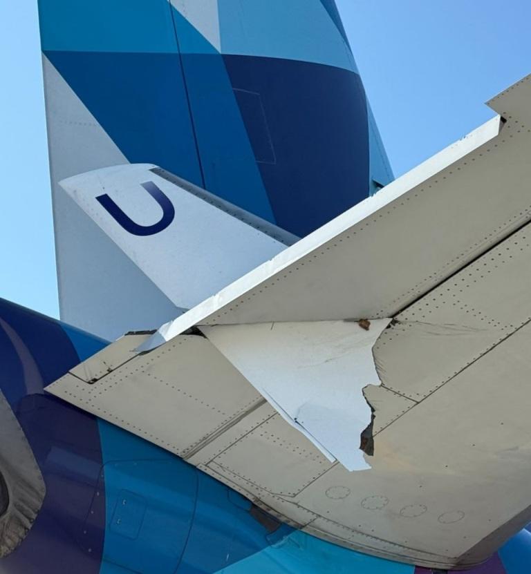 В итоге винглет (изгиб на конце крыла) у первого самолета оказался сломан, а его часть застряла в хвосте второго воздушного судна, который тоже стал неисправен.