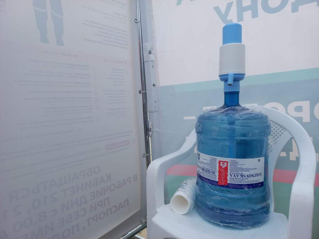 Волонтеры предлагали питьевую воду всем ожидающим в очереди.