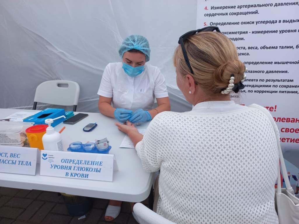 В рамках четырехчасовой работы (с 9 до 13 часов) медицинские сотрудники проводили экспресс-тесты на глюкозу, измеряли артериальное давление, рост и вес для расчета индекса массы тела, определяли уровень кислорода в крови и снимали электрокардиограмму.