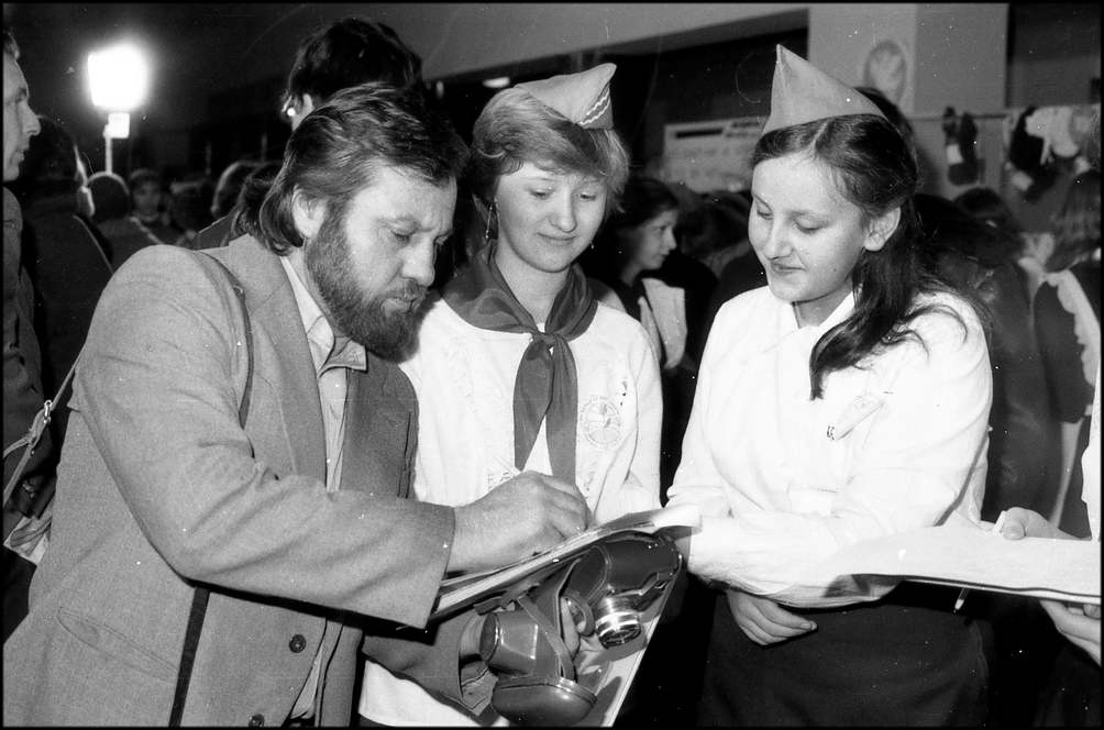 Звучит Гимн демократической молодежи. Хлебом-солью встречает наш город гостей. Митинг открывает первый секретарь горкома комсомола А. Фисунов: