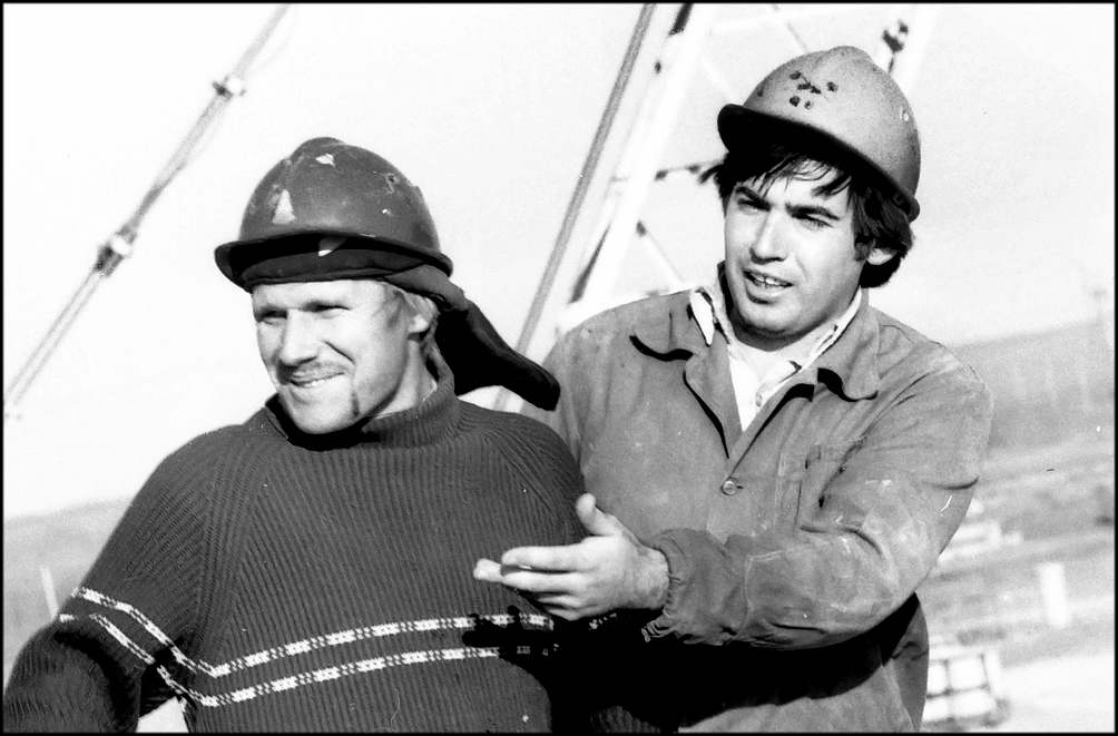 Звено, которое возглавляет О.Топорков, считается одним из лучших в бригаде Т. Карабанова из СМУ-3 домостроительного комбината. Быстро и слаженно работают монтажники этого звена. Как правило, рекордные подъ емы всегда выполняются, когда на монтажной площадке это звено. На снимке: звеньевой О. ТОПОРКОВ (справа) и монтажник Н. ЖУВАЙКО.