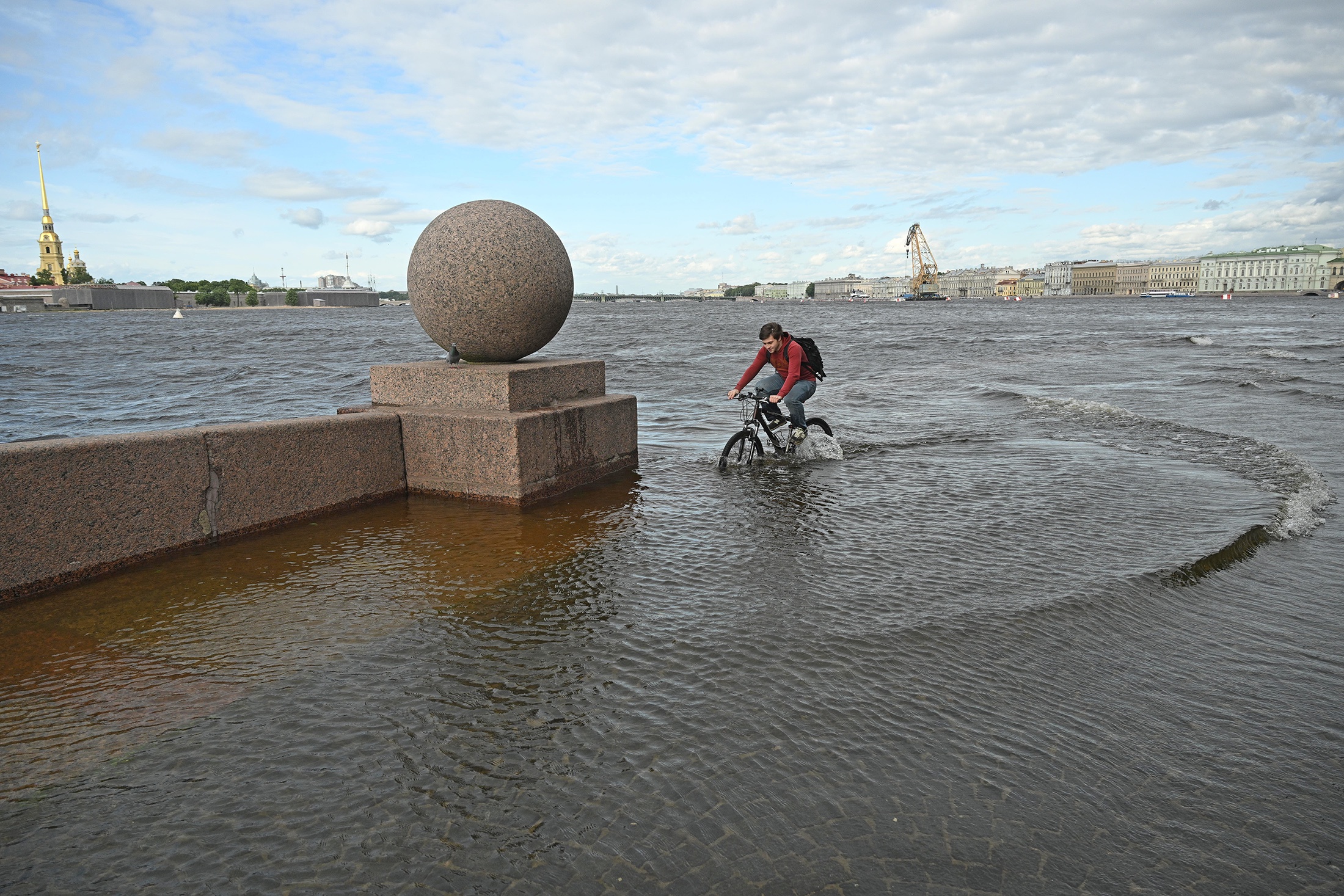 А в Неве вода поднялась над ординаром на 95 сантиметров. В историческом центре города местами волны захлестывали набережные. Но закаленные петербуржцы проезжали затопления насквозь на машинах.