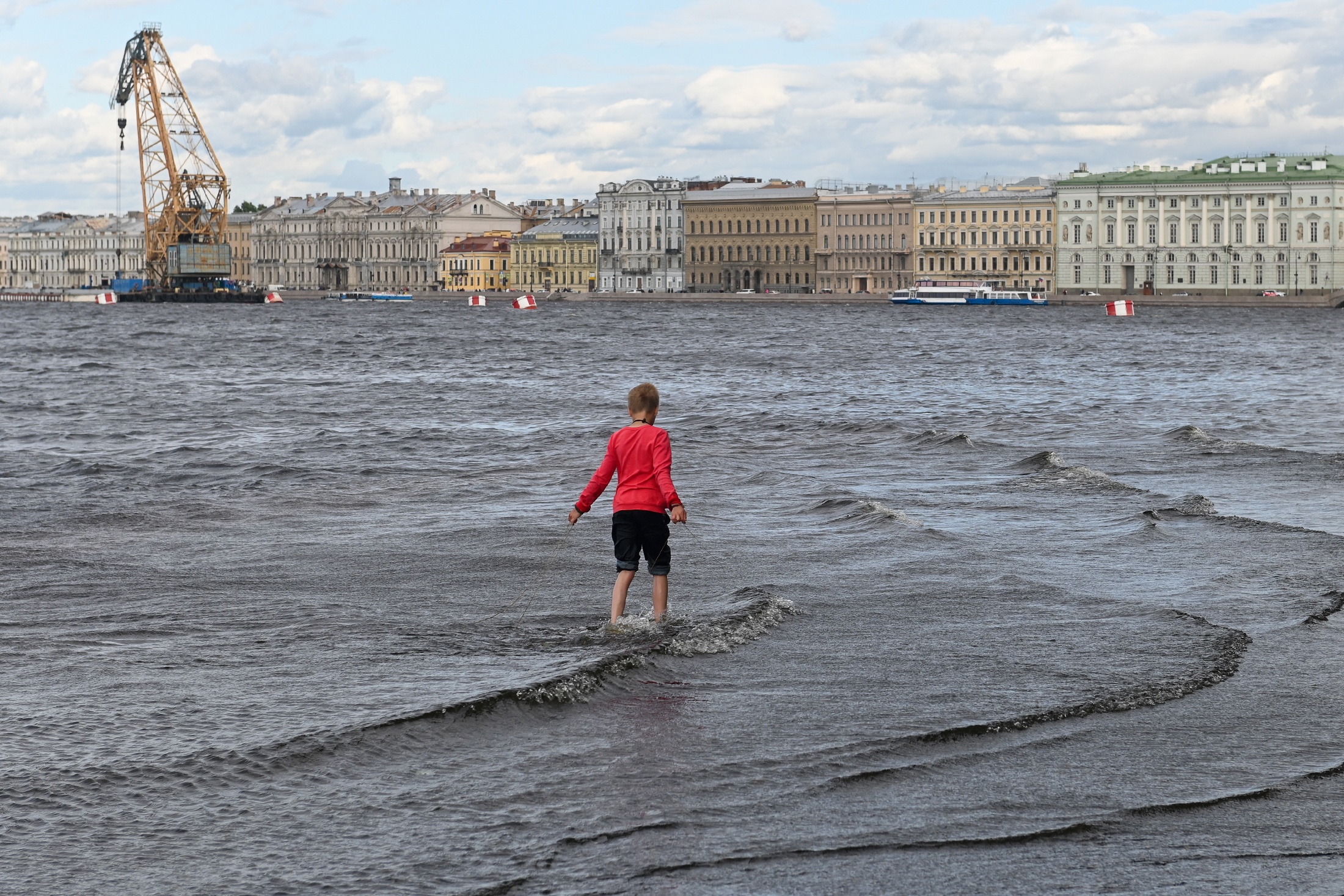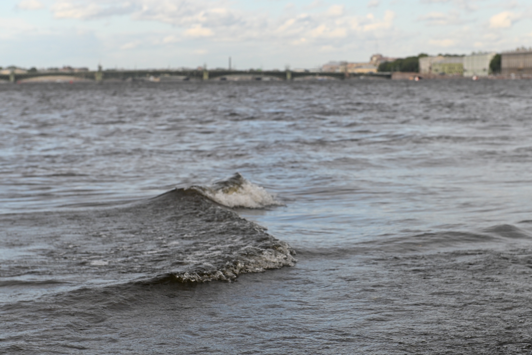 Первый эпизод непогоды в Северной столице пришелся на вечер 3 июля. На город со стороны Норвегии и Финляндии пришел циклон с названием «Енгин», принесший высокие волны и штормовой ветер.