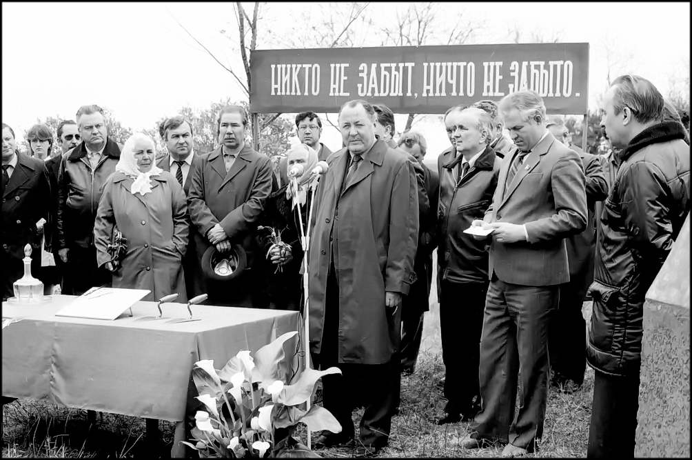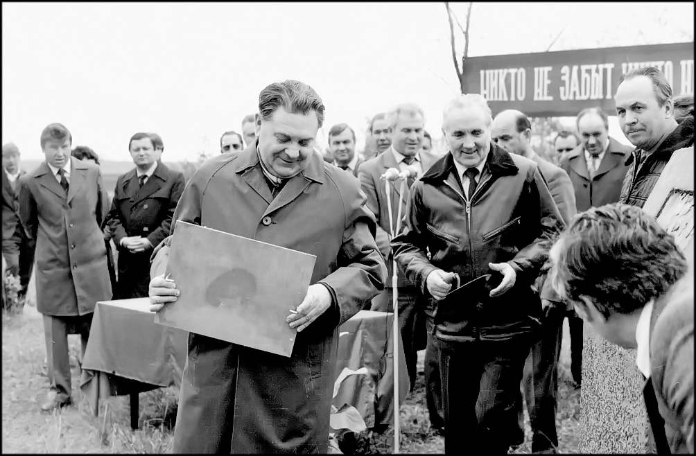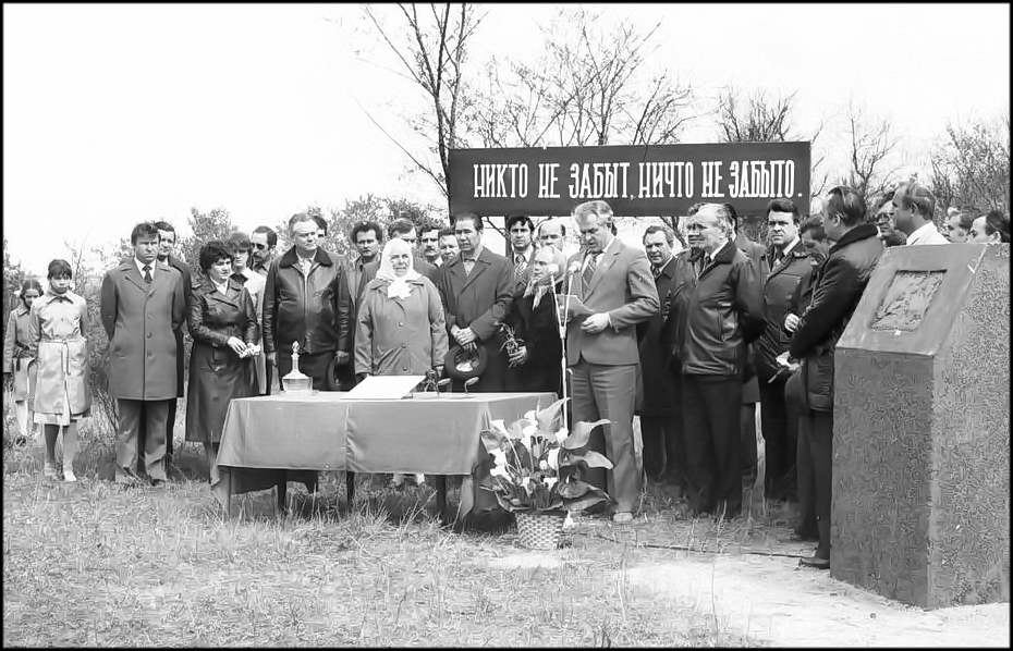 Приняли участие в этом событии первый секретарь обкома КПСС И. А . Бондаренко, председатель облисполкома Н.М.Иваницкий, члены бюро обкома партии первый секретарь ГК КПСС А Е.Тягливый, члены бюро горкома КПСС. С цветами в руках в окружении людей стоят дочери погибших дружин ников Абрамова и Малородова. О том, как продолжают дело, за которое погибли дружинники, р ассказала собравшимся секретарь Цимлянского райкома партии А. М. Зубкова. Па митинге выступил секретарь обкома КПСС М.Е.Тесля. Первый секретарь обкома партии И. А. Бондаренко и председатель облисполкома Н. М. Иваницкий устанавливаю т памятный знак мемориала в честь Цимлянской дружины, погибшей в борьбе за становление Советской власти на Дону второго апреля 1918 года. Звучит залп из оружия.