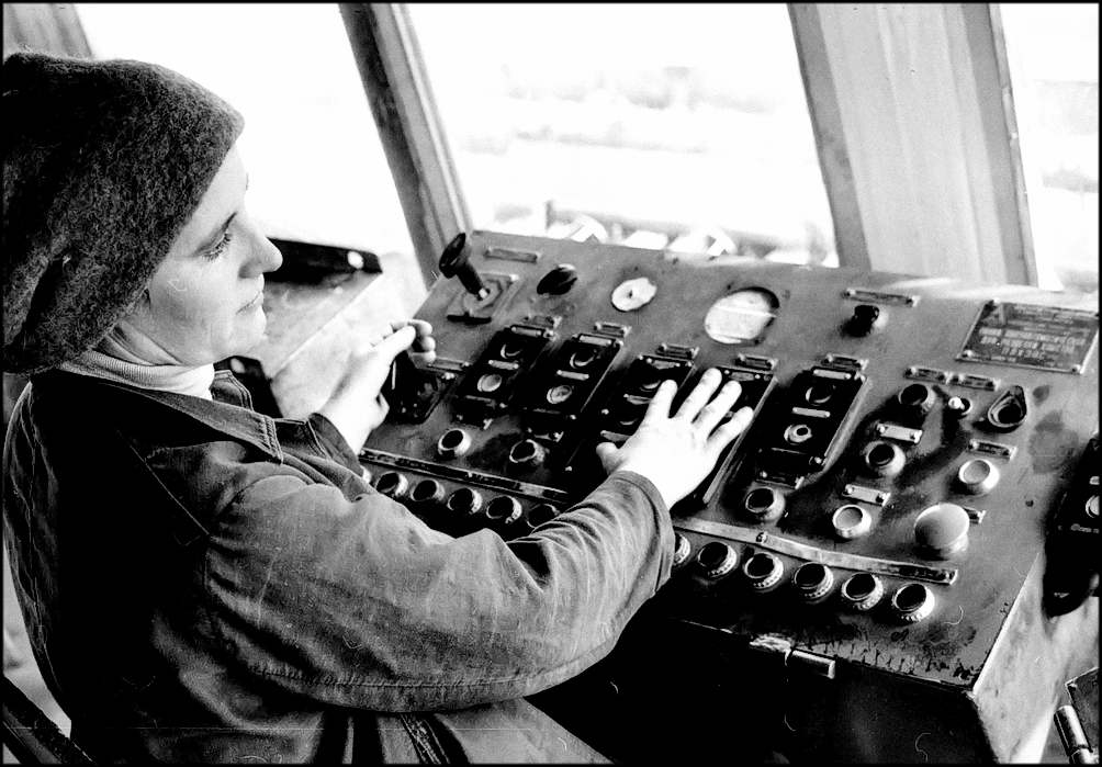 на снимке: оператор полуавтоматической линии разделки хлыстов цеха лесобиржа Волгодонского лесоперевалочного комбината Галина Алексеевна ГАНИЧ. 13 лет она работает в цехе оператором. В совершенстве освоила свою профессию, постоянно добивается высоких результатов в труде. Бригада, в которой она трудится высокими показателями встречает Первомай.