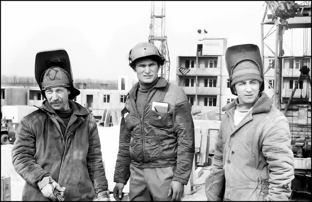 Выросли этажи жилого дома № 259 в микрорайоне B-VIII нового города. В этом есть заслуга бригады монтажников Н. Донченко из СМУ-2 домостроительного комбината. Велико число лучших, на кого держат равнение в бригаде. Это и сварщики А .РОДИОНОВ , и Ф. ХАСАНОВ (на снимке) с бригадиром Н. ДОНЧЕНКО.