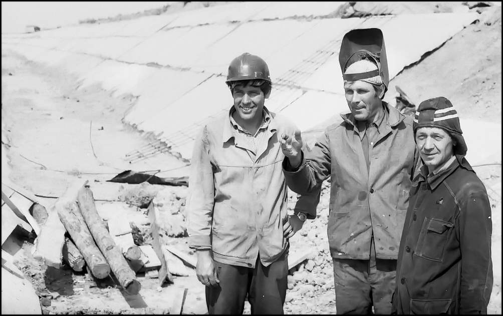 На снимке: бригадир В. ТОЛЧАНОВ, сварщик Ю. РОСТОВСКИЙ и монтажник Н. ХАРЧЕНКО.