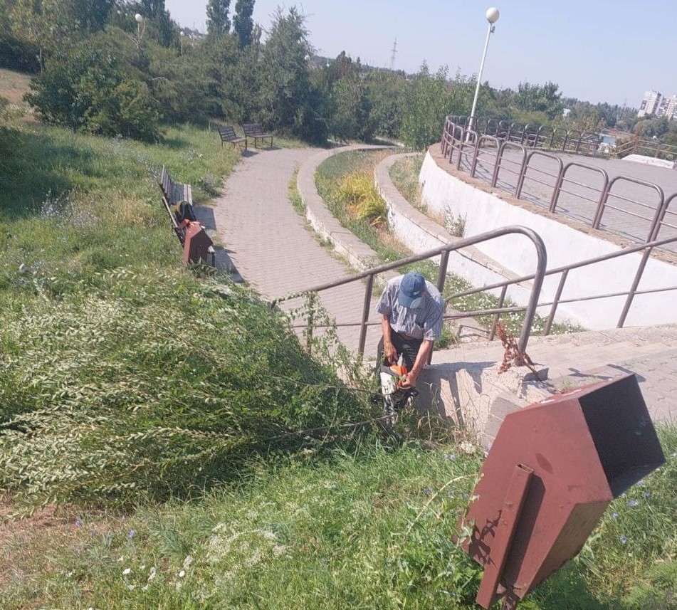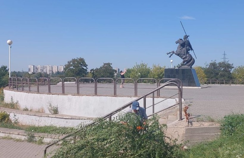 Департамент городского хозяйства в преддверии юбилея Волгодонска продолжает приводить в порядок памятные места. Теперь дошла очередь до монумента атаману Якову Бакланову. Сотрудники производственного отдела департамента выполнили косметический ремонт постамента, где местами отвалилась облицовочная плитка. Также в сквере Бакланова обрезали буйную поросль, которая уже свисала на лестницу. Хотя бы один участок набережной должен выглядеть достойно.