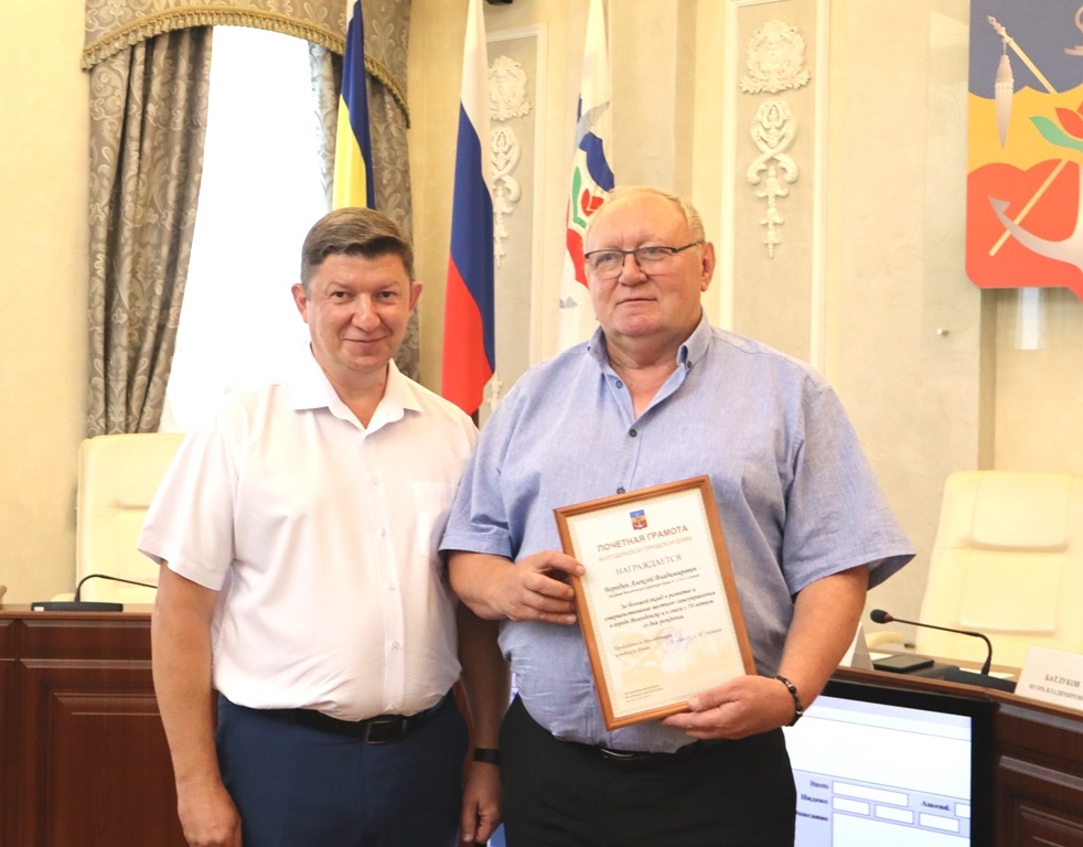Состоялось заседание городской Думы, на котором ее председатель Сергей Ладанов вручил почетную грамоту депутату по округу № 16 Алексею Бородину, которому в этот день, 17 июля, исполнилось 70 лет. Алексей Владимирович был депутатом четырех созывов, и объявил, что на следующий срок больше не пойдет.