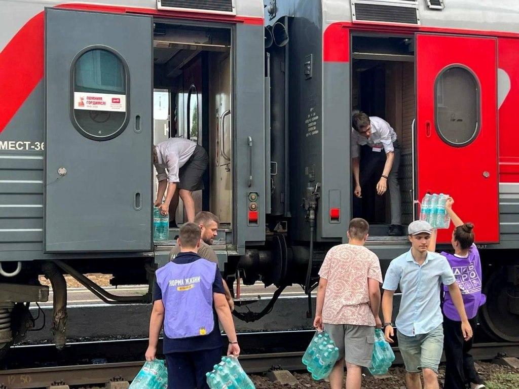 Как сообщил с своем телеграмм-канале врио губернатора Ростовской области Юрий Слюсарь, волонтёры регионального центра #МыВместе и Общероссийского Народного Фронта раздали пассажирам задержанных поездов десятки тонн воды и питания.