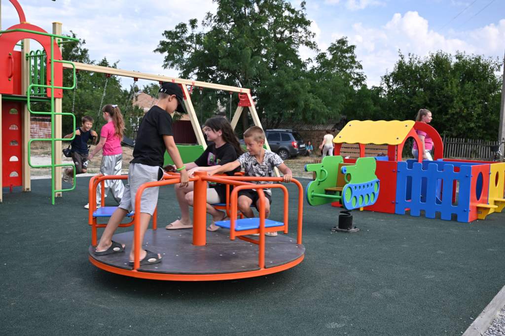 На площадке появились горка, карусели, турники, канаты, лестницы, качели, лабиринт, скамейки для отдыха. Все это установлено на безопасном для детей покрытии.