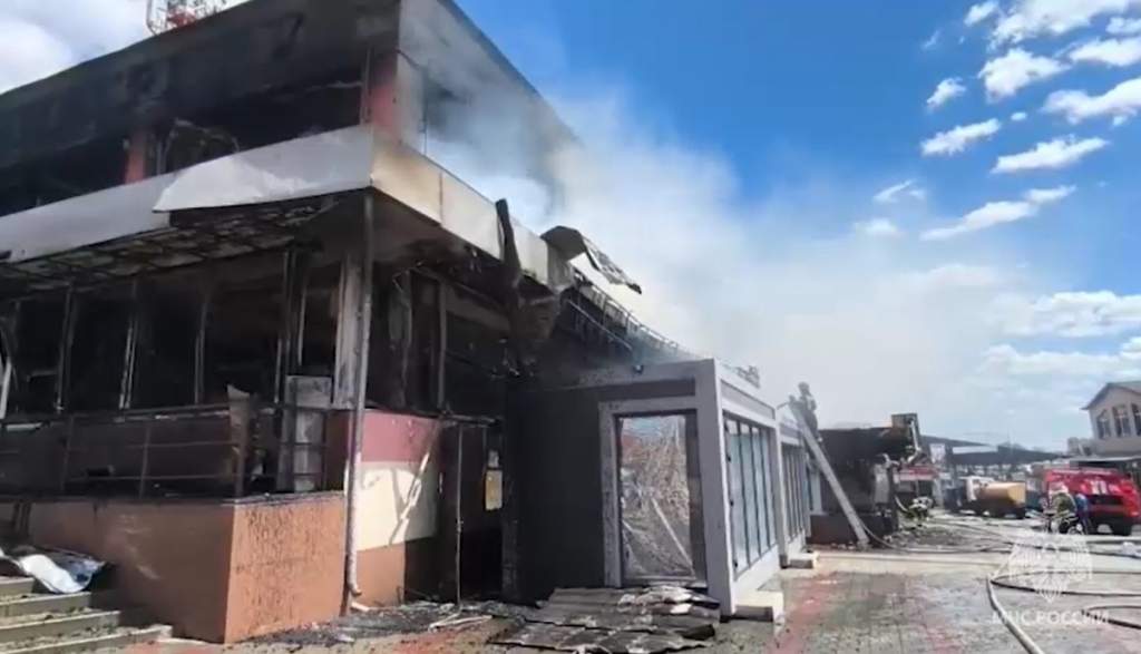 Как сообщает региональное управление МЧС, на вызов по поводу возгорания пожарные расчеты прибыли в 09:05. В 12:00 пожар был локализован на площади 1300 кв.м, в 14:05 полностью ликвидирован. Распространения огня на расположенный рядом рынок не допущено.