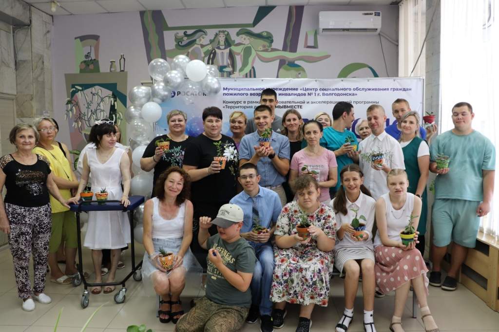 В Центре социального обслуживания № 1 Волгодонска уже второй год работает уникальный инклюзивный проект «Просто я занят». Благодаря грантовой поддержке АНО «Энергия развития», полученной в декабре 2024 года, проект успешно развивается. Это подтвердил недавно состоявшийся двойной праздник творчества и общения, в рамках которого состоялись мастер-класс «Ботаническая встреча» и тематическая фотосессия «Немного о нас«.