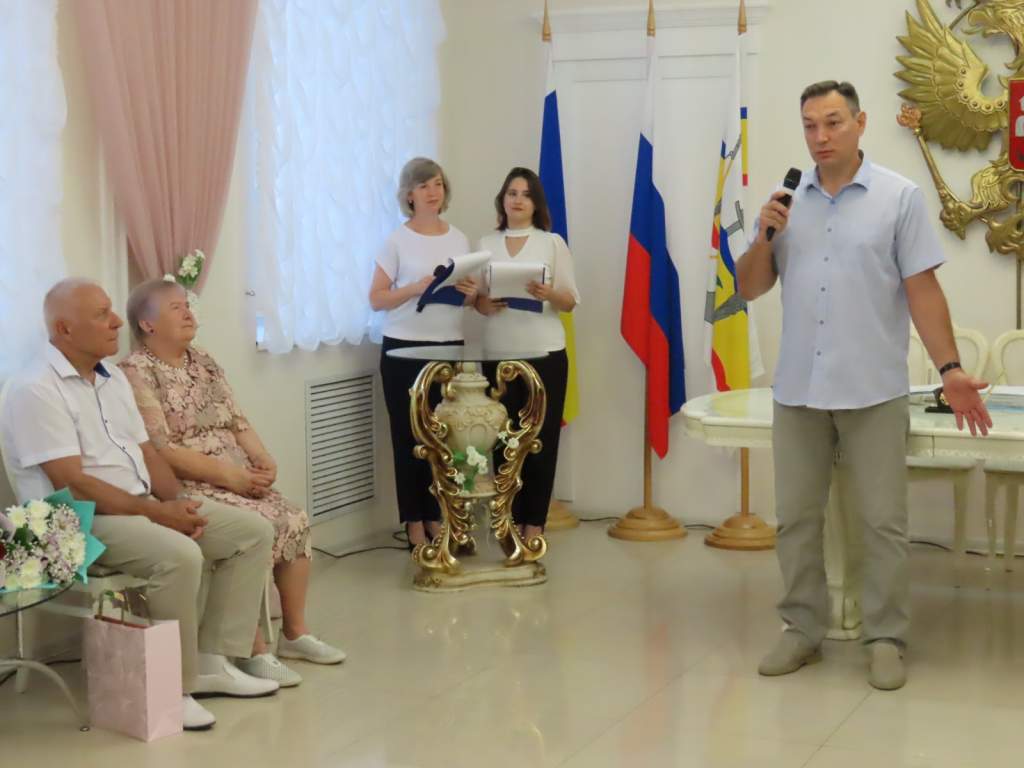 В канун юбилея Волгодонска состоялось чествование семейных пар, которые рука об руку прошли долгие годы. Городской отдел ЗАГС, где проходило мероприятие «Ровесники Волгодонска», создал одновременно и торжественную, и по-настоящему теплую атмосферу домашнего праздника – юбиляров семейной жизни поздравили врио главы администрации города Дмитрий Вельможко, председатель Думы Сергей Ладанов, дети и внуки уважаемых супругов – настоящего золотого фонда нашего атомграда.