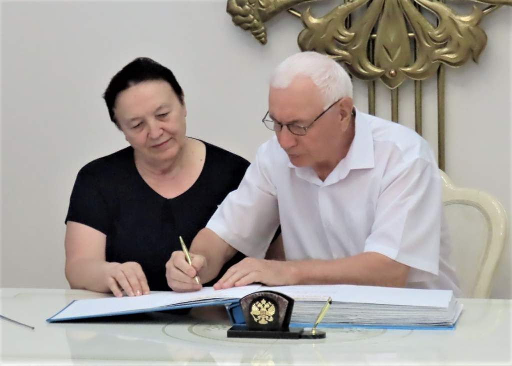 Виновники торжества по традиции оставили подписи в книге юбиляров семейной жизни. Особо трогательной выдалась часть встречи, во время которой сын супругов Василенко – Сергей — поблагодарил родителей за воспитание и бессонные ночи. От первых лиц города юбиляры получили цветы и подарки, для них прозвучала замечательная песня «Волгодонск – это мой город».