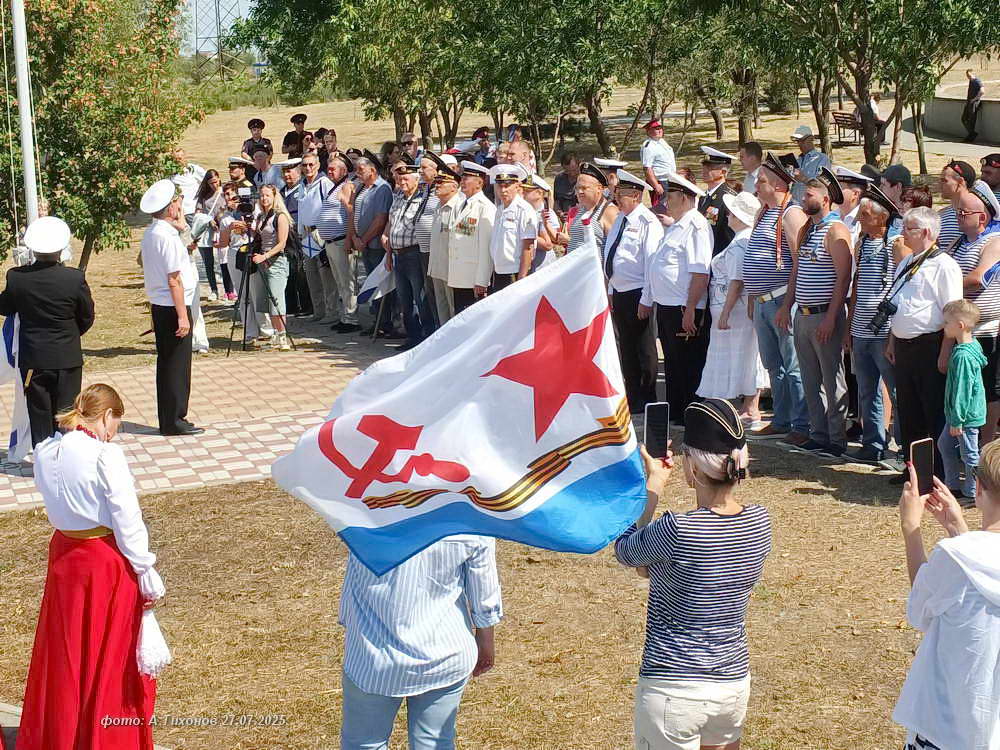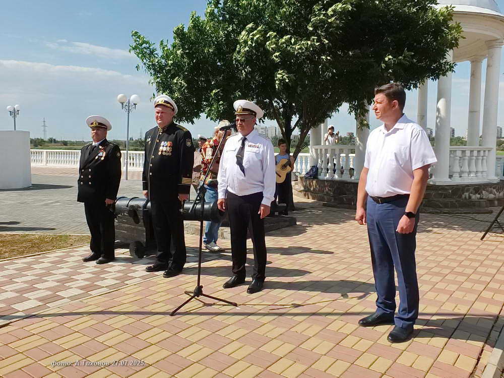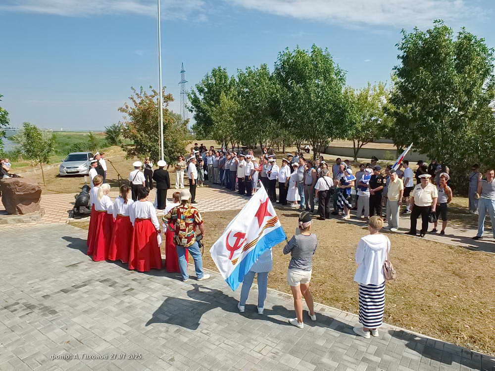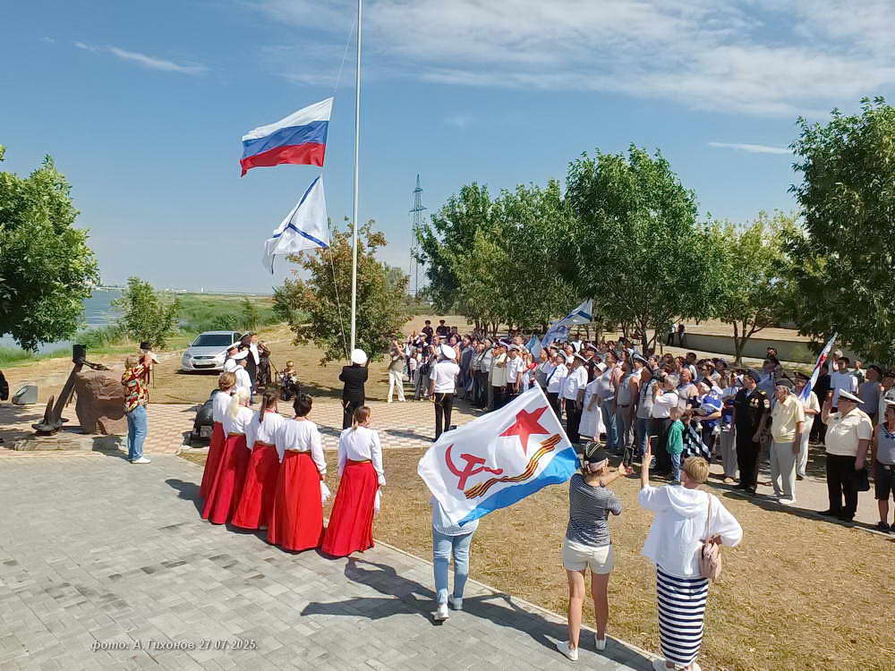 Продолжением стало торжественное построение на набережной сквера генерала Бакланова и подъём государственного и Андреевского флагов. Сегодняшний праздник моряков также совпал с 75-летием Волгодонска!