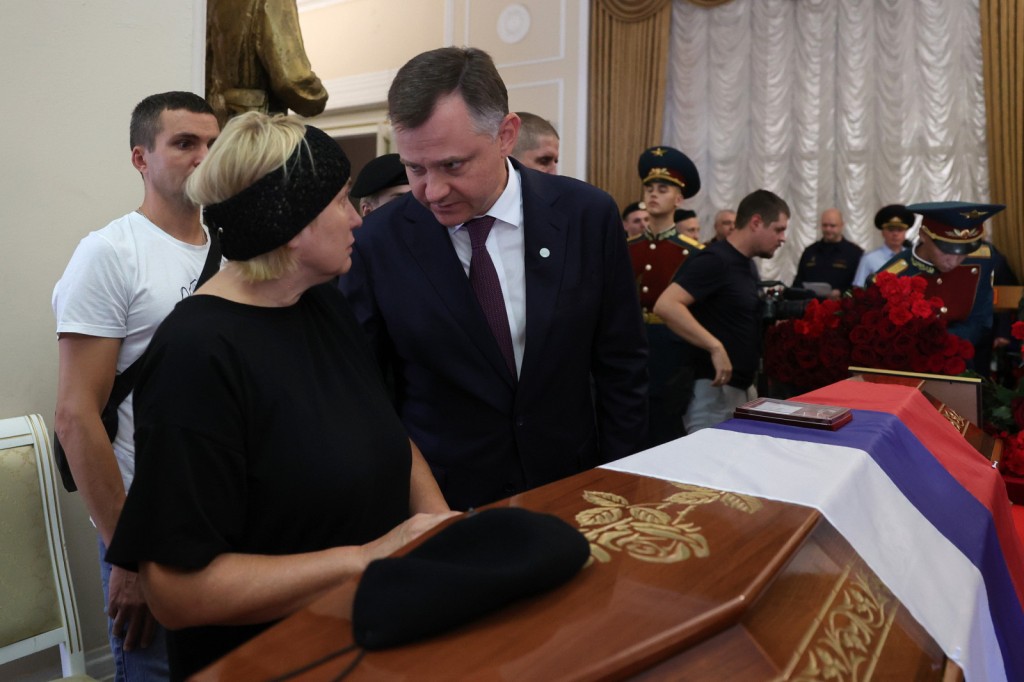 Проститься с погибшими и поддержать их родных и друзей пришли коллеги погибших. В церемонии принял участие и врио губернатора Ростовской области Юрий Слюсарь.