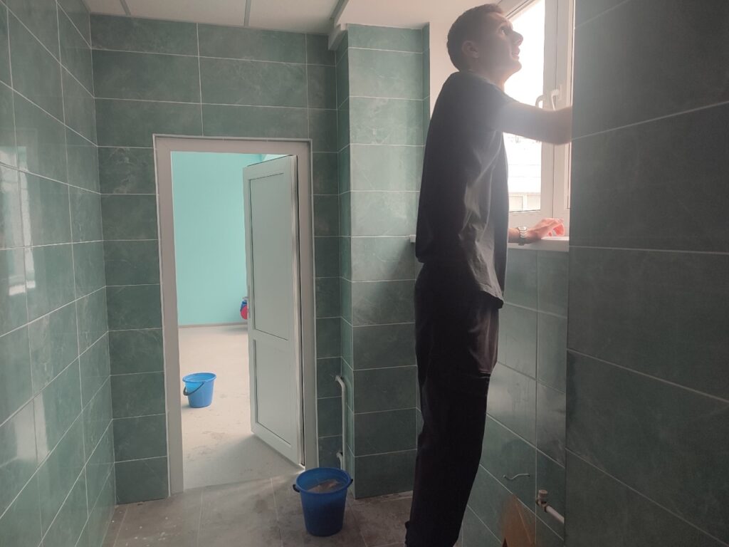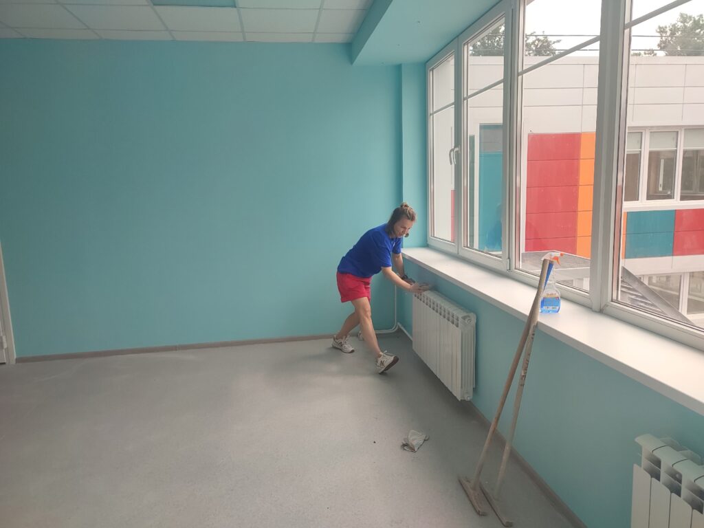 Молодые добровольцы мыли окна и генералили в игровых комнатах, что стало важным шагом в укреплении волонтерского сообщества.
