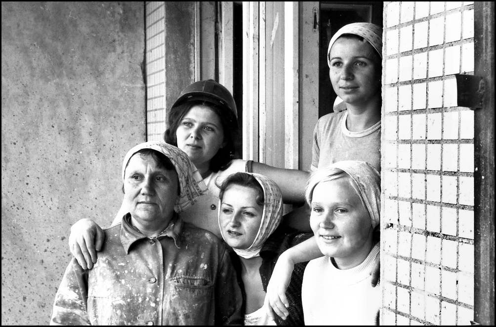 Отлично трудится на отделочных работах комсомольско — молодежная бригада штукатуров-маляров, возглавляемая Г.А. Нестеровой из СМУ-18 «Отделстроя». С разных мест нашей необъятной Родины съехались на «Атоммаш» девчата, здесь многие нашли свое призвание, стали настоящими мастерами своего дела. На снимке: передовые штукатуры-маляры Т. Филь, Е. Попова, С.Семанкович. Е. Парецкая с бригадиром Г.А. Нестеровой. Фото А. Тихонова.