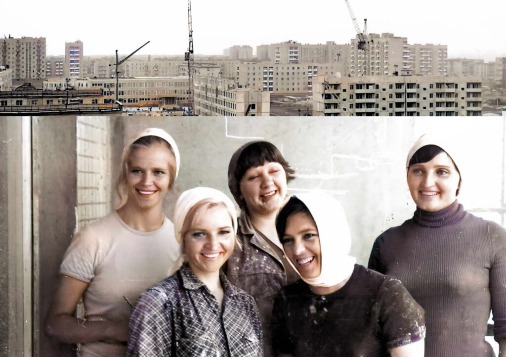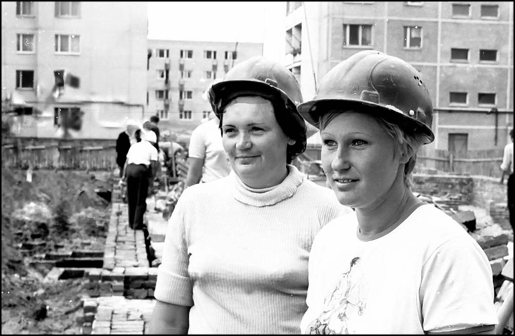 Сестры Розалия и Юзефа ШПАКОВСКИЕ (на снимке) приехали на «Атоммаш» по комсомольской путевке из Казахстана. Сейчас они ударно трудятся в комсомольско-молодежной бригаде И.П. Фоменко из СМУ.11 «Отделстроя» на отделочных работах в жилом доме № 8 в юго-западном районе. До этого работали на первом корпусе «Атоммаша», АБК-2, отлично потрудились на объектах телецентра.