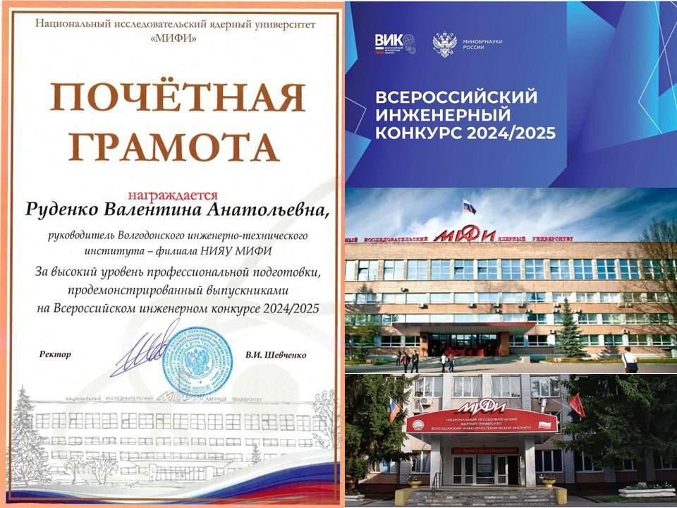 —Это работа всей большой команды ВИТИ НИЯУ МИФИ, которая самоотверженно трудится на образовательном поприще ядерного вуза и вносит существенный вклад в подготовку специалистов для передовой, атомной отрасли России, — отметила руководитель ВИТИ Валентина Руденко. — Благодарю руководство ядерного университета за высокую оценку нашей деятельности. Готовы и впредь работать максимально эффективно и решать стратегические задачи, которые ставит перед нами НИЯУ МИФИ, ГК «Росатом» и Минобрнауки Российской Федерации.