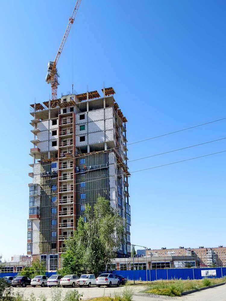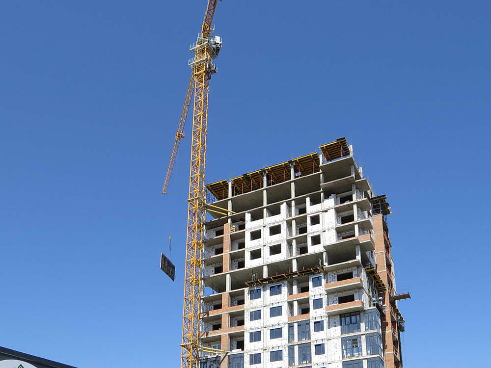 Сейчас строители заканчивают работы во возведению 15 этажа жилого здания.