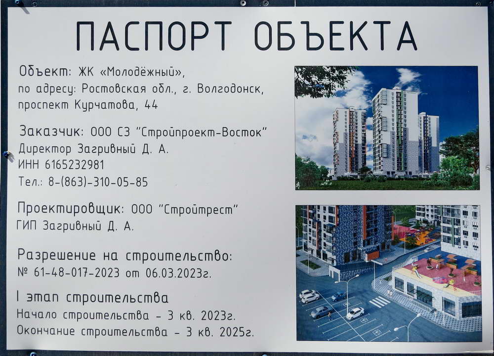 В Волгодонске новую высотку в квартале ВЦ-1 на ул. Кошевого, 44 собираются возвести к концу 2025 года. Всего в этом месте планируют возвести три 20-этажных дома, которые объединят в один ЖК «Молодежный».