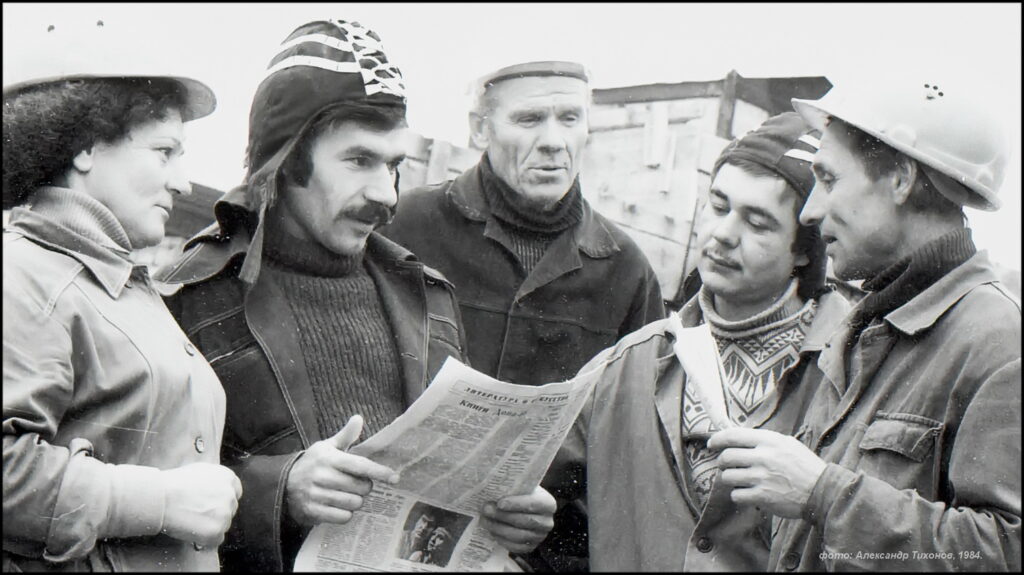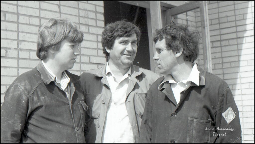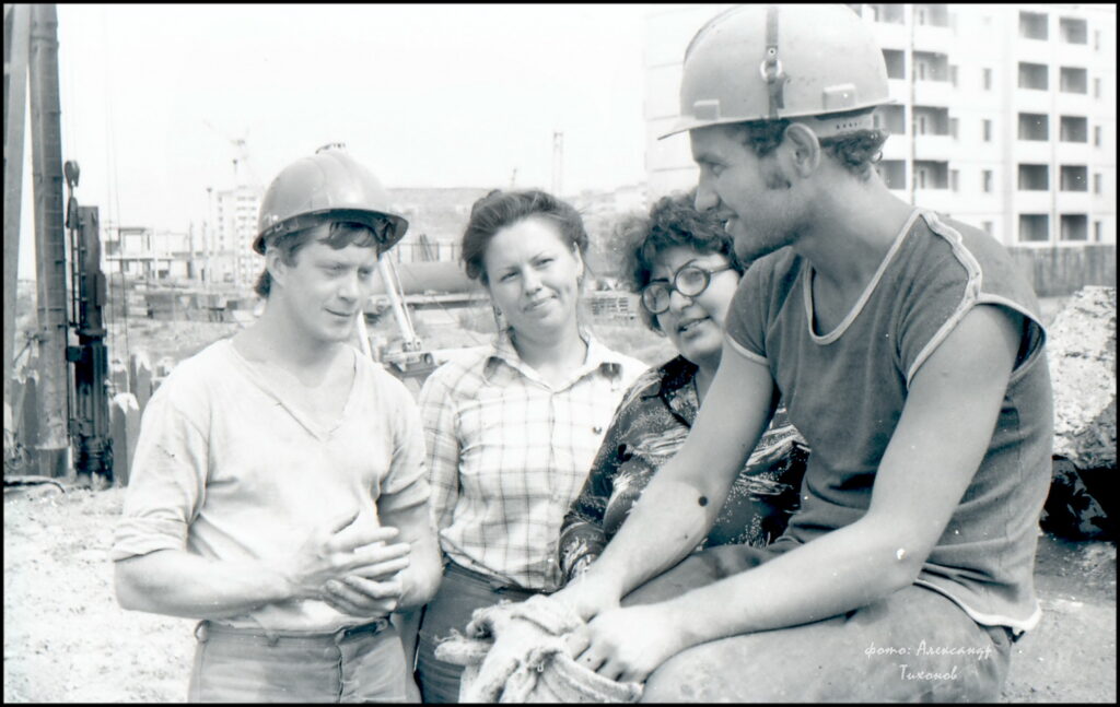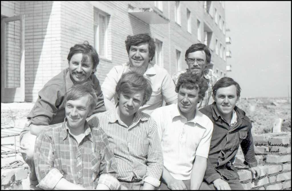 На снимке нашего журналиста Александра Тихонова строители бригады Н.П.Садчикова из СМУ-8 «Гражданстроя» — коллектив передовой, стабильный. Все работают слаженно и с хорошим качеством.