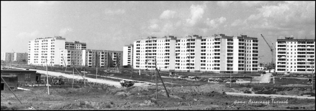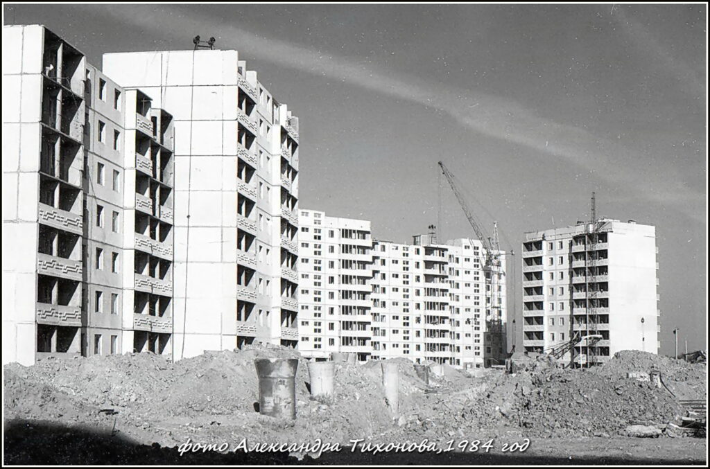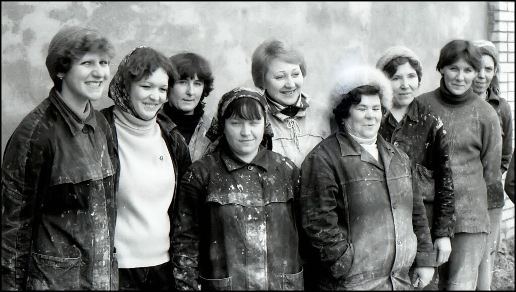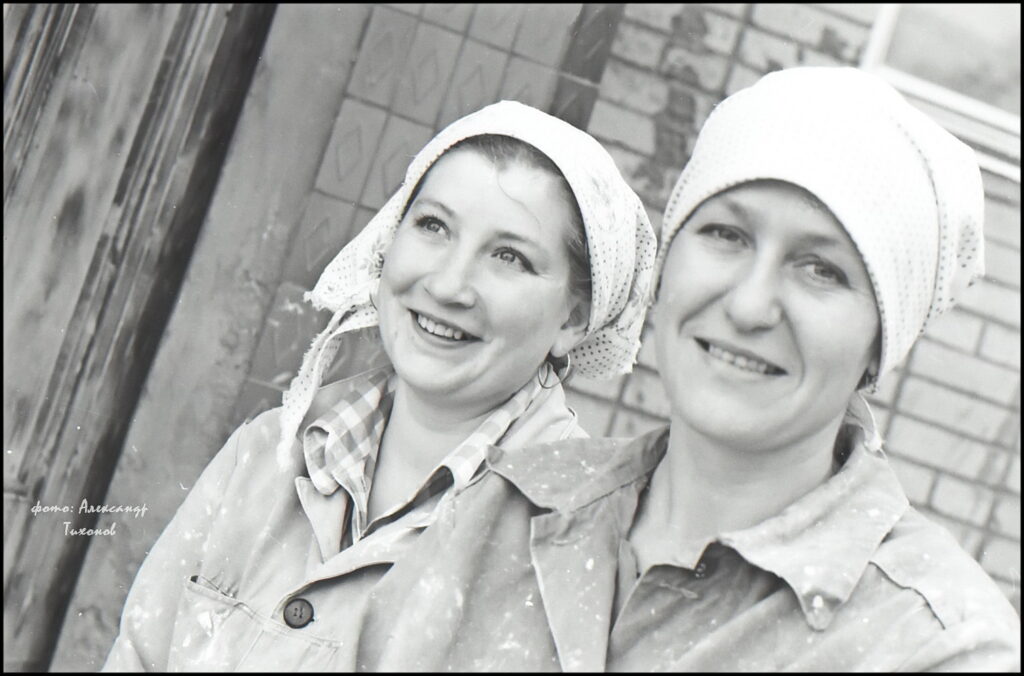 На снимке: Т.П. Быкова –штукатур-маляр из бригады В.Н. Парчук (СМУ-5, Гражданстроя) на строительстве школы №240