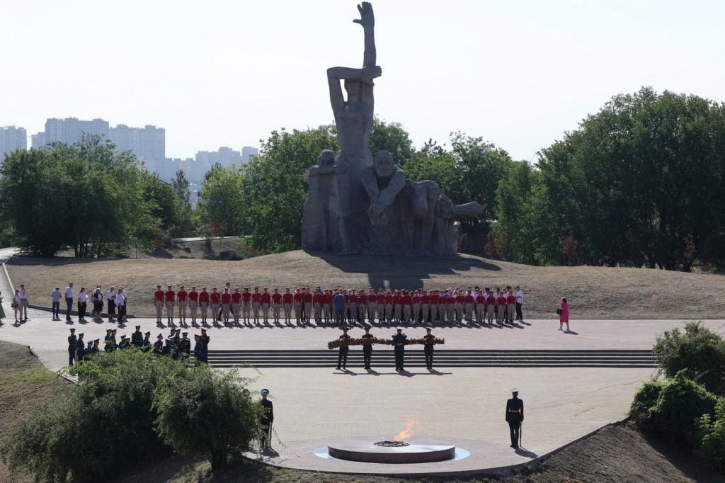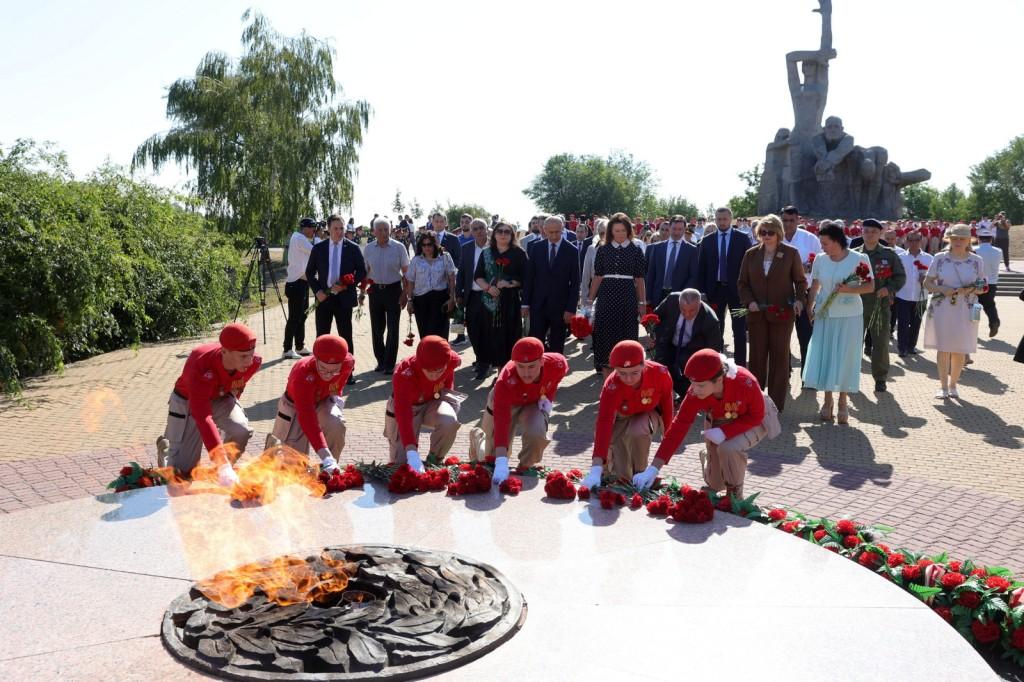 В церемонии возложения цветов к мемориальному комплексу в Змиевской балке принял участие глава региона Юрий Слюсарь, представители Законодательного Собрания области, администрации Ростова-на-Дону, Южного военного округа, городского совета ветеранов, «Юнармии», а также многочисленные ростовчане.