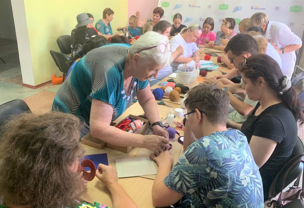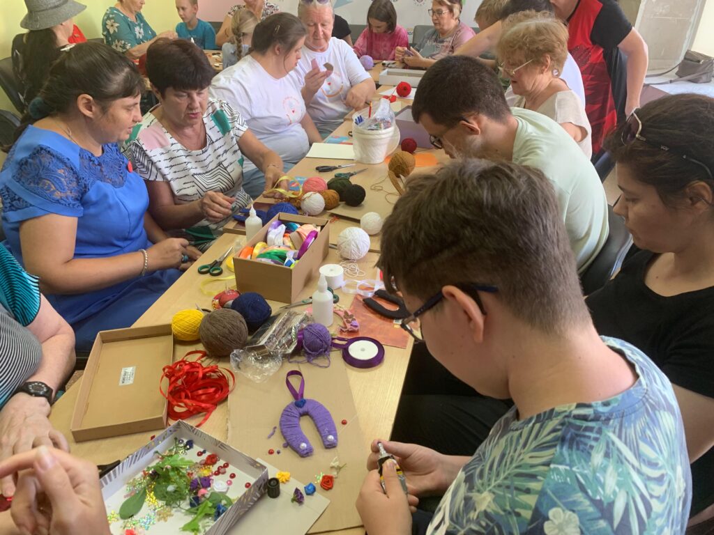 Ребята вместе с наставниками и старшими рукодельницами творили из картона, пряжи и разных бусинок, цветочков, листиков, красивые, яркие подковки, которые будут защищать от невзгод. Очень важная составляющая этого мастер-класса – вместе общаются и занимаются рукоделием и обычные дети, и ребята с особенностями развития.