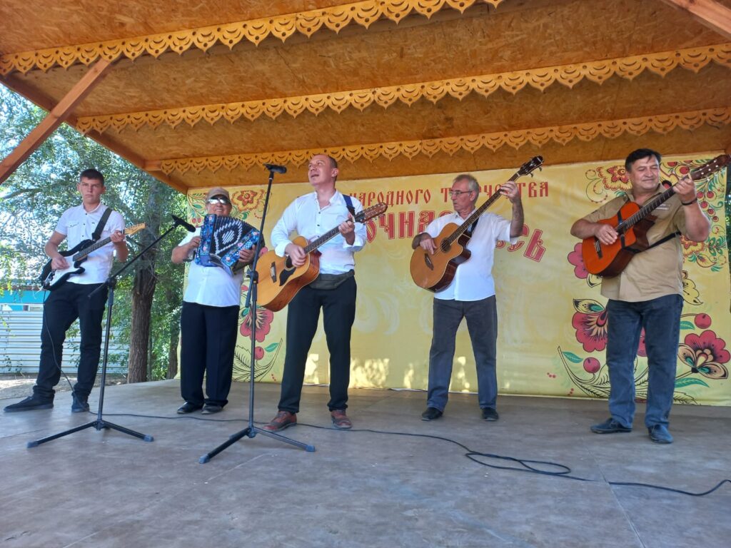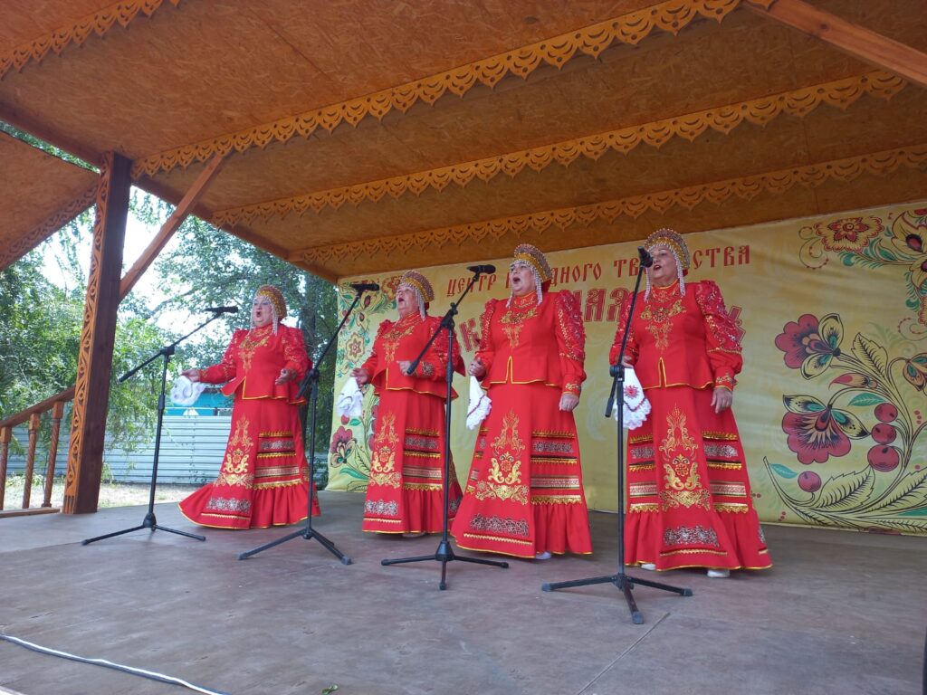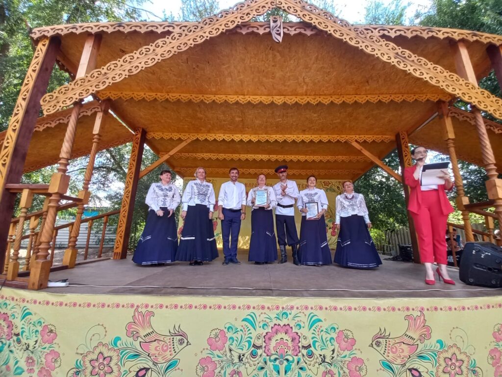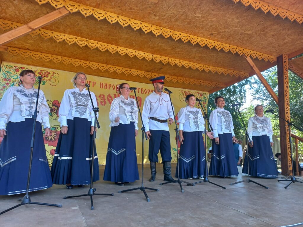 Ансамбль народной и казачьей песни «Золотая звонница», созданный в 2014 году Светланой Гончаровой (с 2020 года коллектив возглавляет Евгений Голубь), порадовал зрителей песнями «Край ты наш привольный» и «Дон течёт издалека».
