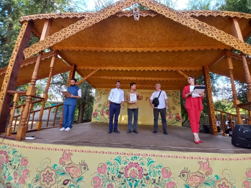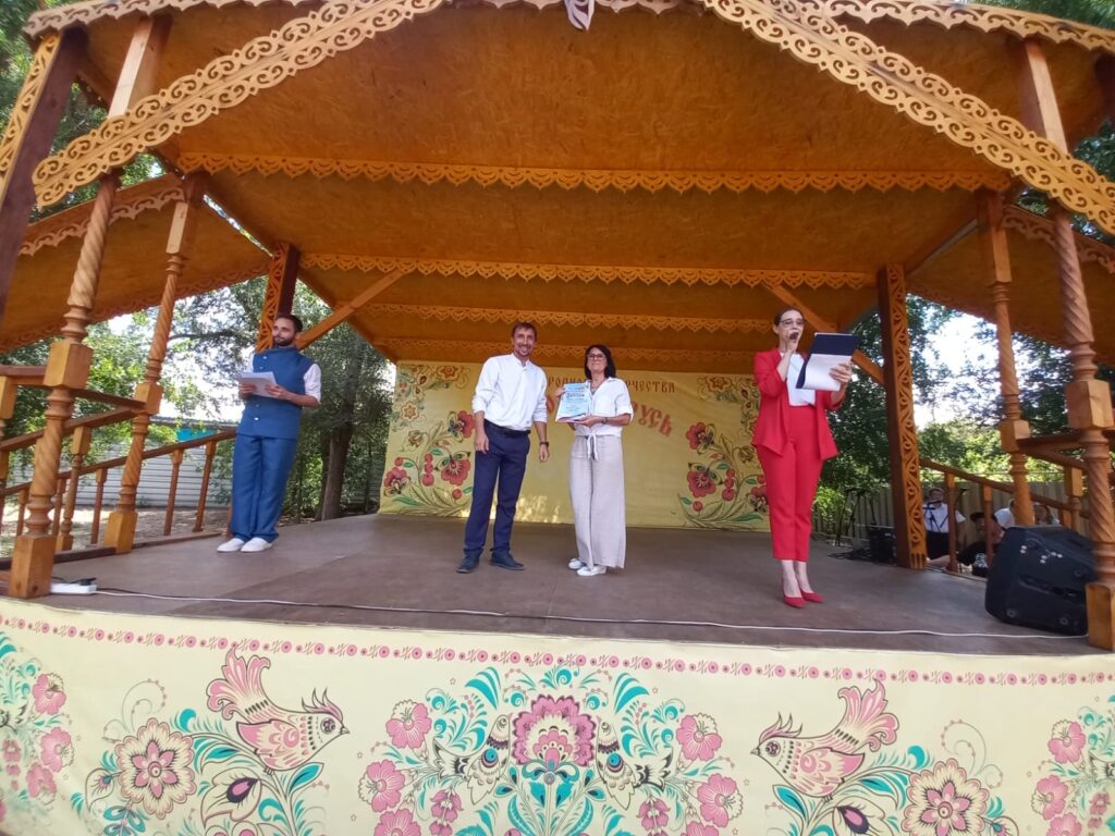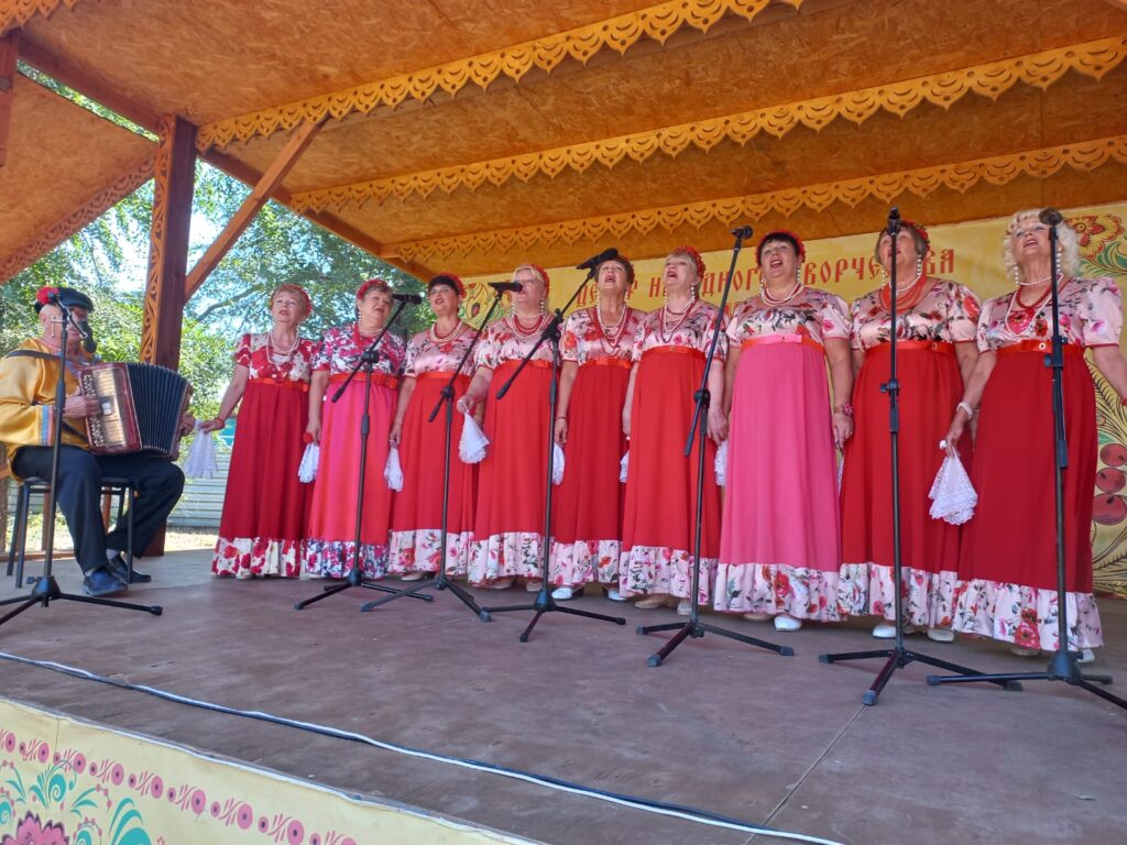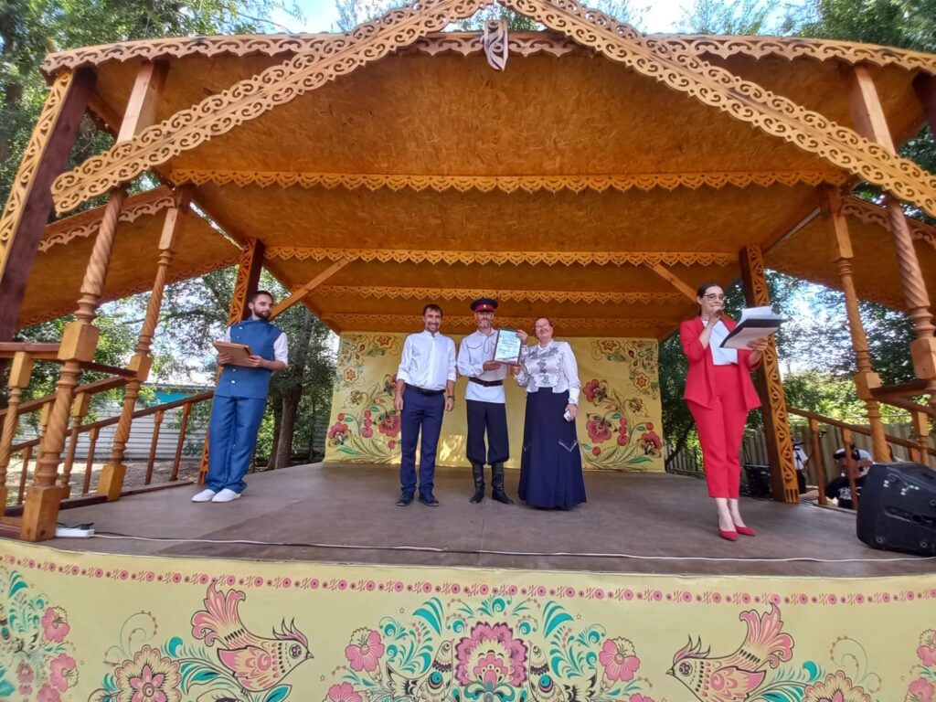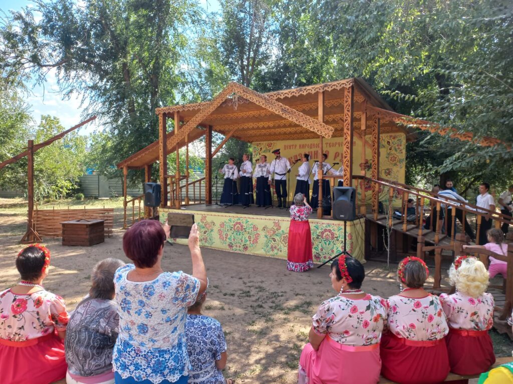 Ансамбль народной и казачьей песни «Золотая звонница», созданный в 2014 году Светланой Гончаровой (с 2020 года коллектив возглавляет Евгений Голубь), порадовал зрителей песнями «Край ты наш привольный» и «Дон течёт издалека».