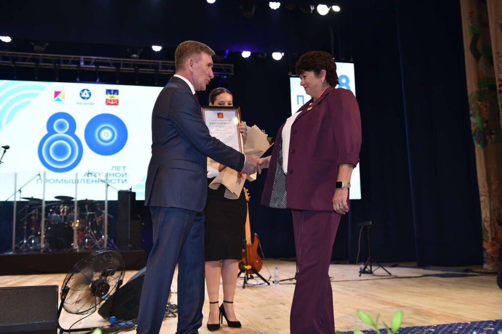 Торжественная программа в ДК имени Игоря Курчатова стала ключевым событием в честь 80-летия атомной промышленности и 75-летия Волгодонска в ряду праздничных мероприятий, которые проходят в городе расположения Ростовской АЭС под девизом: «Две даты — одна история: Волгодонск и мирный атом». На вечере присутствовали руководители отрасли, правительства донского региона, администрации Волгодонска, представители трудовых коллективов предприятий, входящих в разные дивизионы Росатома: электроэнергетики, машиностроения, ветрогенерации, строительства и инжиниринга и других.