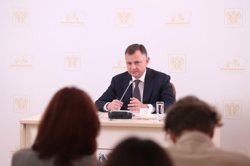 Проходила пресс-конференция в «Шолохов-центре», что, по мнению главы региона, символично, поскольку Михаил Шолохов – это «человек, который очень неравнодушно и патриотично относился к нашему родному краю».