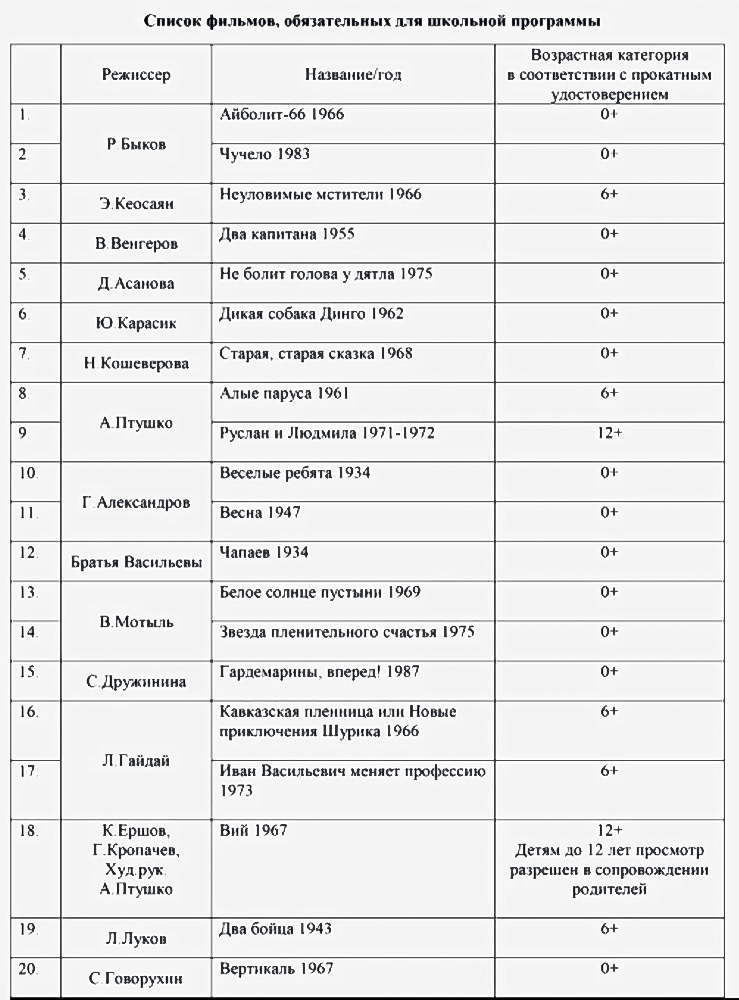 В дополнение к списку во все регионы страны направлены методические рекомендации по изучению произведений отечественного кино в школах.