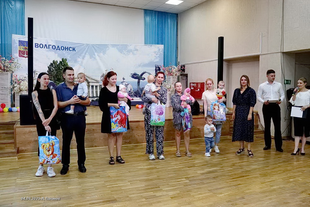 Мероприятие получилось по-настоящему торжественным, наполненным яркими красками, весельем и искренними эмоциями. По многолетней доброй традиции, старт празднику дало чествование самых юных жителей округа. В этот день особые поздравления принимали десять счастливых семей, в которых в 2025 году появились на свет новорожденные. Рождение ребенка – это всегда большая радость и надежда на будущее, поэтому их появление стало символичным началом празднования юбилея города. Каждой семье были вручены памятные подарки и теплые слова напутствия, ведь именно эти малыши будут строить и развивать Волгодонск в будущем.