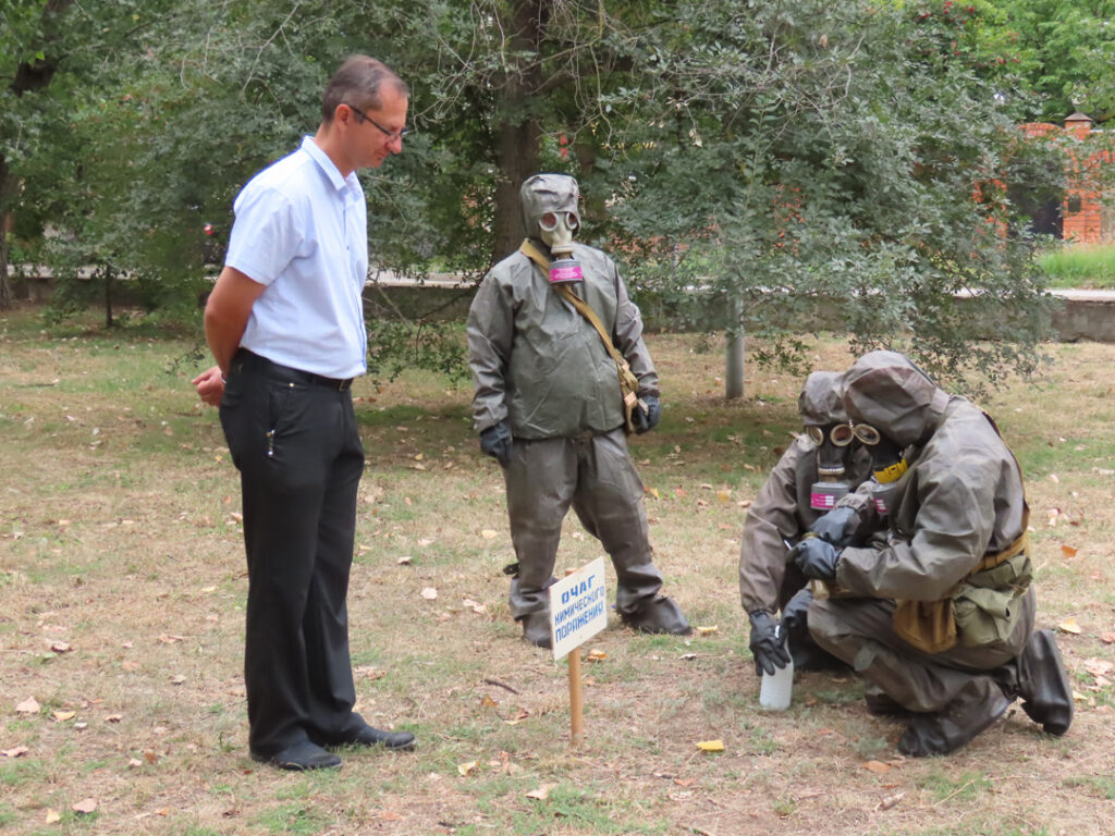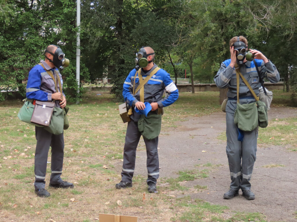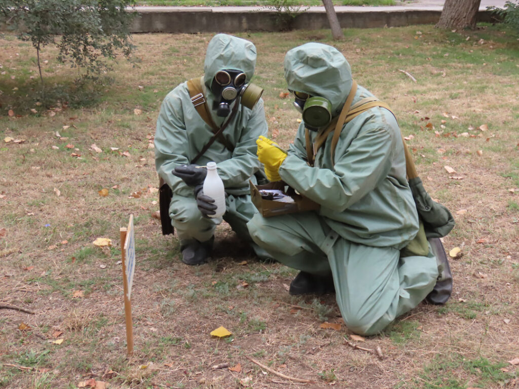 На первом этапе участники показали свое снаряжение. На втором — провели радиационную разведку на местности. На третьем – химическую. При этом команды должны были быстро и правильно надеть защитные костюмы, респираторы и противогазы. Сотрудники постов РХН продемонстрировали свое умение определять отравляющие вещества в воздухе и замерять радиационный фон на почве и возле машины.