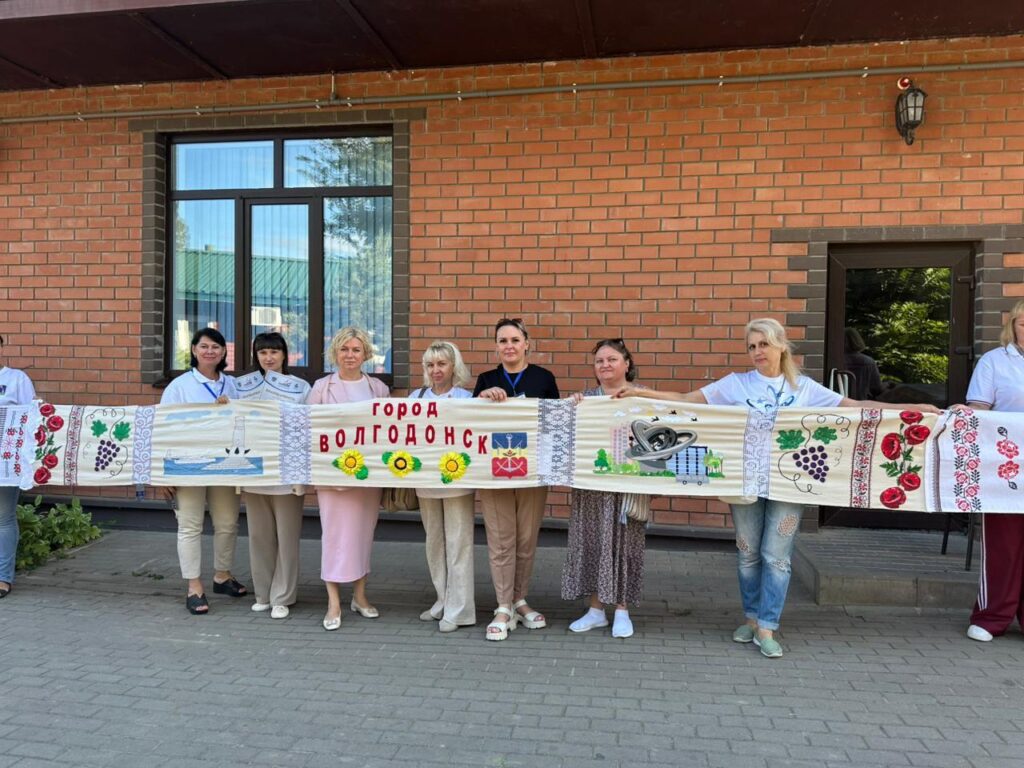 Символичным проектом, объединившим всю область, стало создание единого «Донского рушника» длиной 225 метров. Каждый муниципалитет представил свой отрезок полотна. Над волгодонским фрагментом потрудились 13 мастериц объединения «Таланты Волгодонска», отобразив ключевые вехи и символы города — от рождения до «мирного атома».