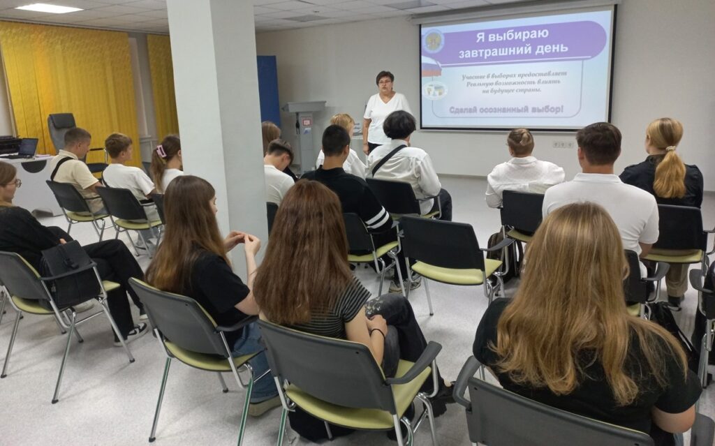 До выборов губернатора Ростовской области и депутатов Думы Волгодонска остаются считанные дни. В преддверии дней голосования (12, 13 и 14 сентября) в центральной библиотеке города состоялся час права «Я выбираю завтрашний день» для учащихся техникума ВИТИ НИЯУ «МИФИ». Ребятам рассказали о Едином дне голосования и одном из главных конституционных прав граждан Российской Федерации — о праве избирать и быть избранным.