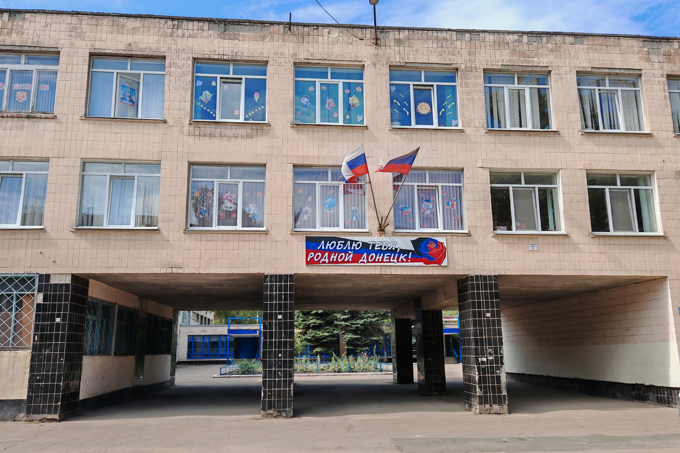 Над входом в школу развеваются флаги России и ДНР. Учеников встречает надпись: «Люблю тебя, родной Донецк!» и клумба с розами — символами города. На перемене бегает детвора. У дверей собираются родители, встречающие школьников после уроков. А чуть в стороне специалист проводит геодезический мониторинг. Это необходимо, чтобы приступить к ремонту здания. Школа построена в 1975 году, а в 2025-м празднует свою 50-летие. За время украинской власти ее не ремонтировали ни разу. Но ситуация скоро исправится. Первое обновление уже сделано: у входа появилась табличка, посвященная двум героям СВО. Примечательно, что она висит в одном ряду с другой табличкой — в память о выпускнике школы Виталии Колпакове, кавалере ордена Красной Звезды, погибшем в Афганистане.