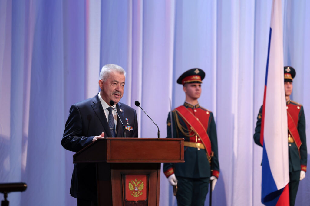 Приветствие от председателя Госдумы Вячеслава Володина зачитал заместитель председателя комитета Госдумы по делам СНГ, евразийской интеграции и связям с соотечественниками Виктор Водолацкий: