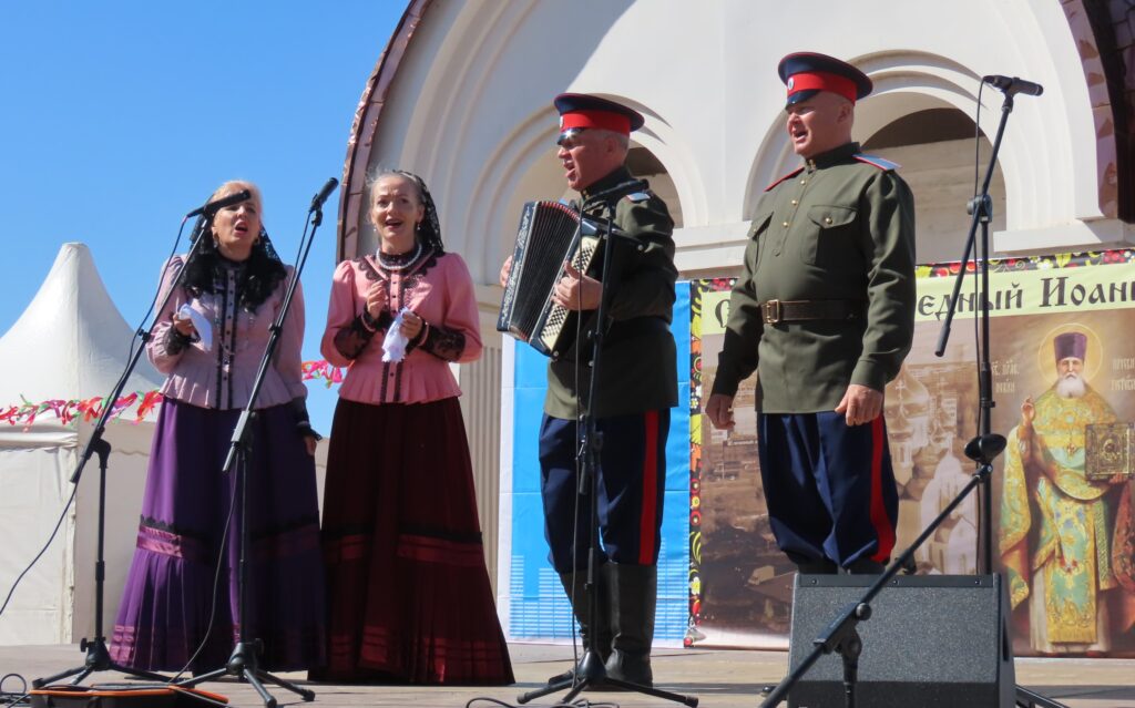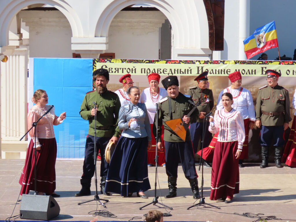 Этот день был посвящен донским традициям – прошел казачий фестиваль. На сцене у храма выступали народные ансамбли со всех уголков Ростовской области. Артисты порадовали зрителей казачьими песнями – и веселыми, и лирическими, и походными, красивыми костюмами, зажигательными плясками. Настоящей жемчужиной фестиваля стало выступление ансамбля «Легенда» Ростовской филармонии.