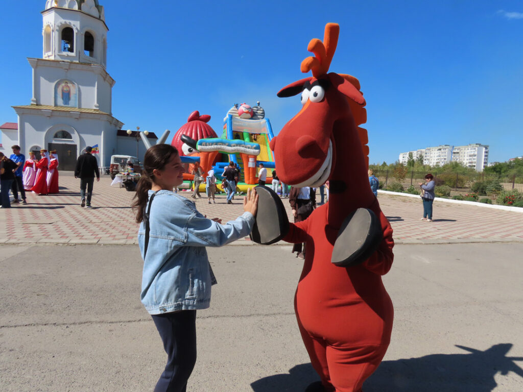 Для детей работали зоны с батутами, мячами, занимательными играми и ростовыми куклами из любимых мультфильмов про трех богатырей. Вновь открылись ярмарочные ряды, где можно было приобрести церковные изделия, иконы, мед, сухофрукты, грибы и многое другое. Сестры милосердия Волгодонской епархии порадовали горожан пирожками «с пылу-жару» и сладостями. А еще специально для ярмарки рукодельницы РОО «Волга-Дон», участницы проекта «Огонек добра», сделали сувенирных ангелов, пушистых «смайликов», лебедей и мишек – их сестры дарили гостям мероприятия.