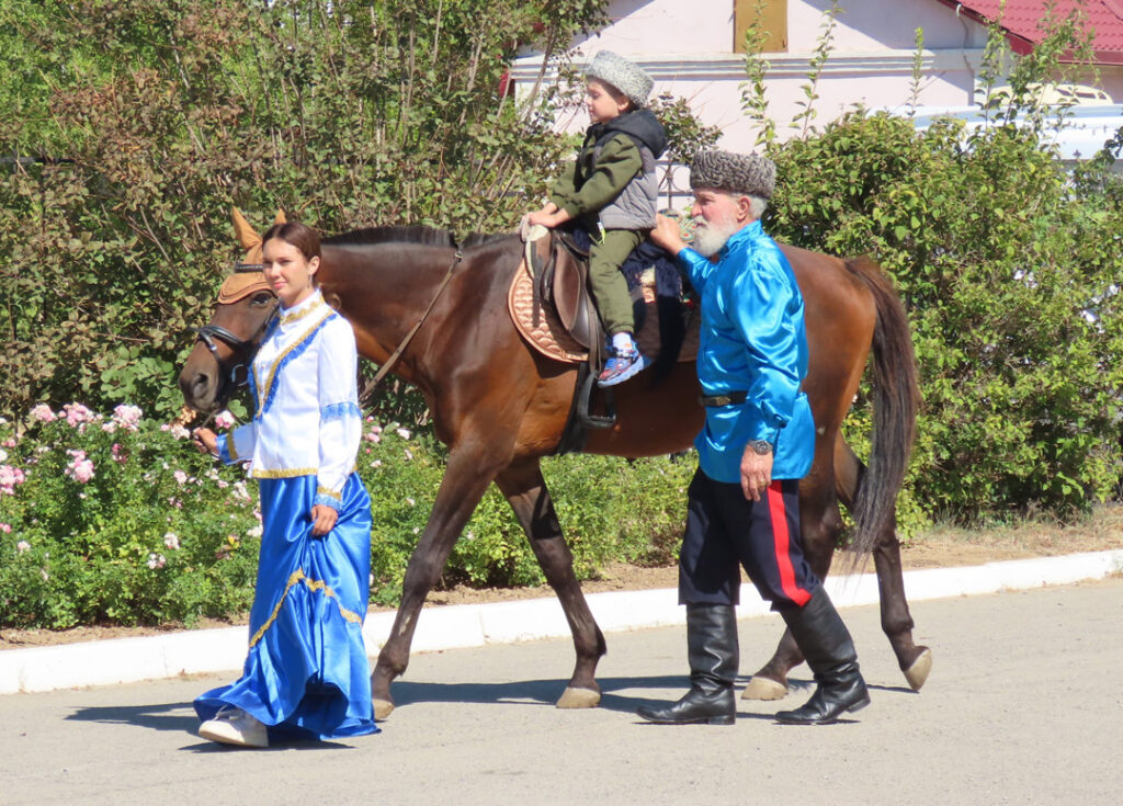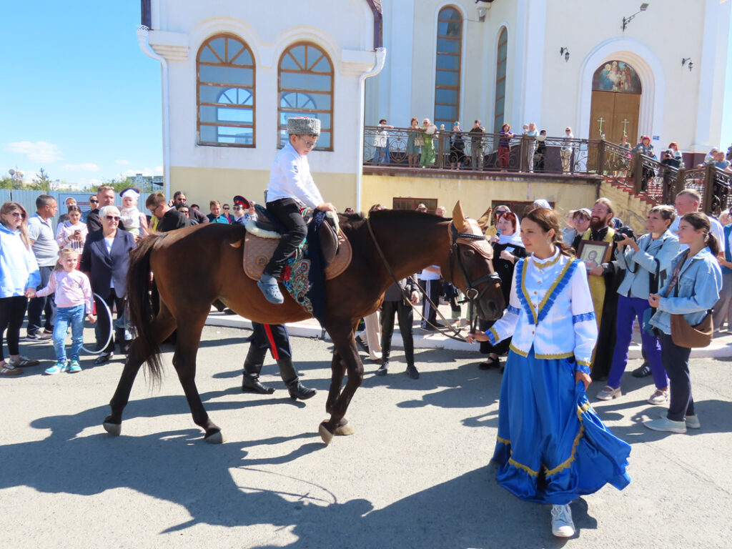 И, конечно же, какой казачий фестиваль без старинных обычаев? Им стал знаменитый обряд посажения юных казаков на коня. Именно с этого момента на Дону мальчишка мог считать себя казаком – начиналось уже настоящее воспитание будущего воина, защитника Отечества. Иерей Владислав благословил юных горожан, которых подсадили на коня, и они торжественно сделали круг по площади. Ребята немного волновались (еще бы – такая честь), но гордо держались в седле.