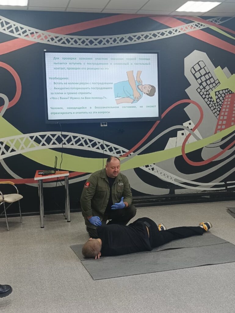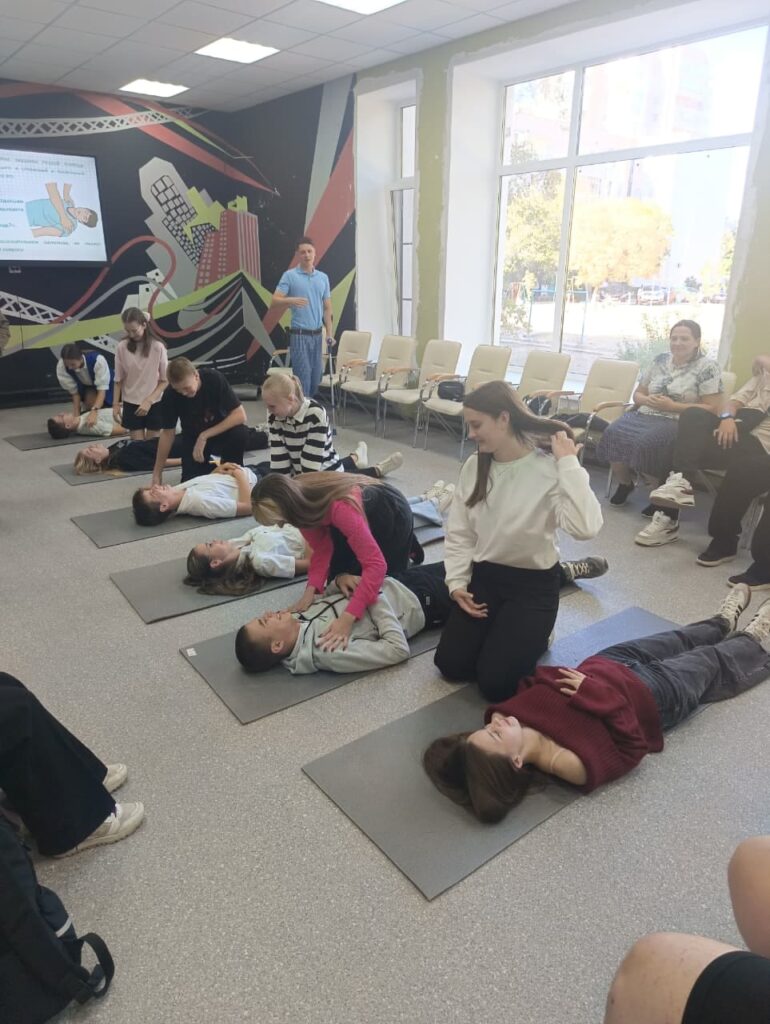 Руководитель Центра Павел Калмыков провёл для учеников школ №5 и №8 практический урок, посвящённый основам экстренной помощи. Школьники освоили алгоритмы действий в критических ситуациях, включая технику устойчивого бокового положения — важный навык для поддержания проходимости дыхательных путей у человека без сознания.