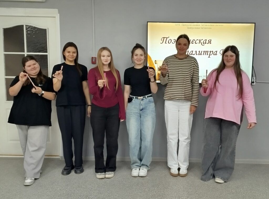 А еще в рамках программы «Пушкинская карта» в центральной библиотеке для будущих медиков библиотекари провели медиаурок «Поэтическая палитра Дона». Юноши и девушки познакомились с донскими писателями и поэтами, закрепили свои знания в интерактивных играх и сами побывали в роли поэтов, придумывая собственные стихи.